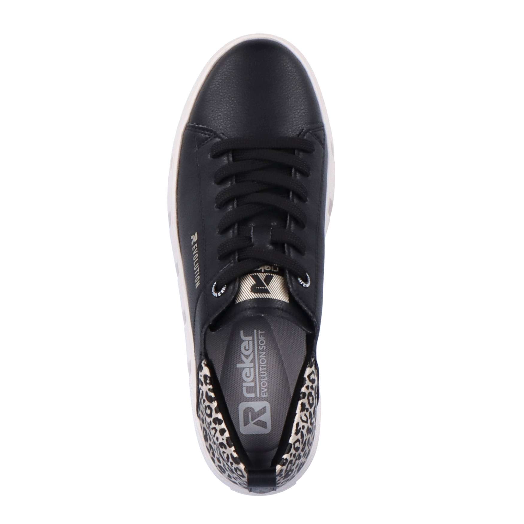 Detailní informace Rieker Revolution je nová řada moderní sportovní obuvi s obrovským důrazem na komfort a pohodlí i při celodenním nošení. Udělejte revoluci ve Vašem šatníku s těmito jedinečnými teniskami RIEKER. Díky šněrování lze botu optimálně přizpůsobit chodidlu. Flexibilní a super lehká podrážka spolu s extra měkkou vyjímatelnou stélkou rozmazlí vaše nohy při každém kroku. Tyto černé tenisky jsou dokonalým společníkem pro každý den!