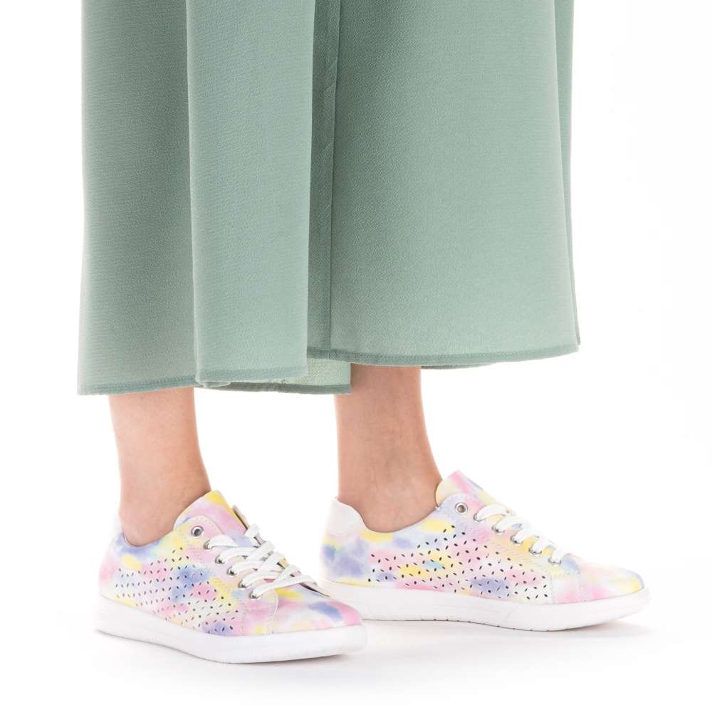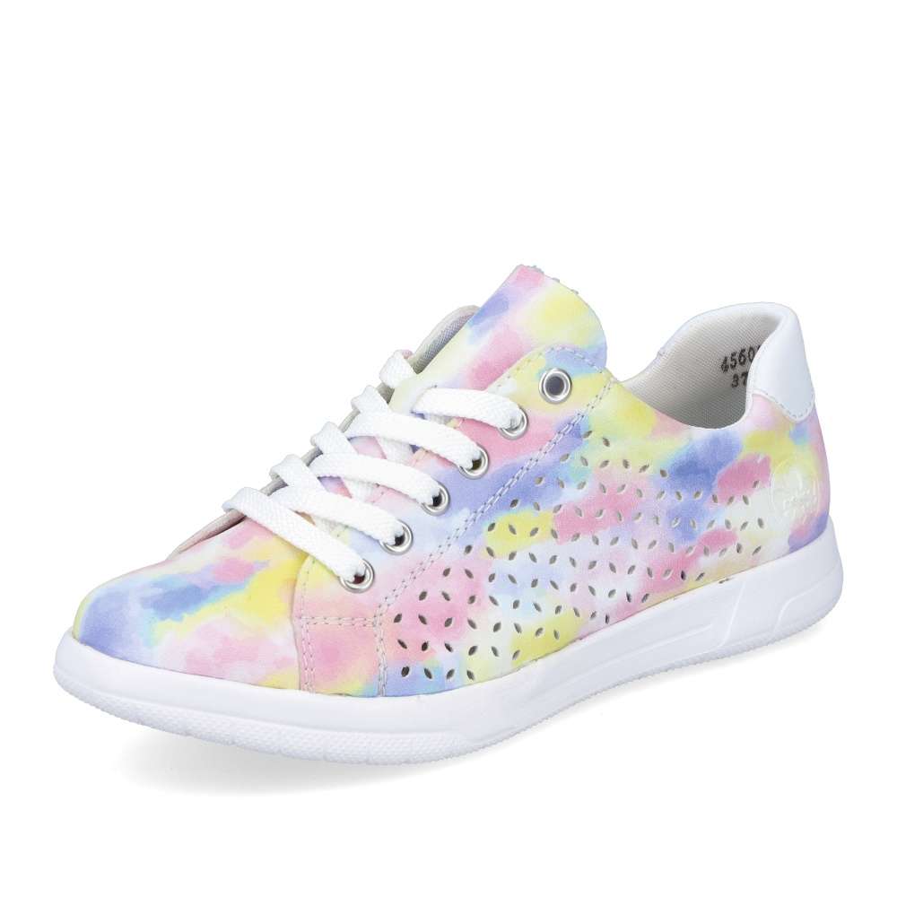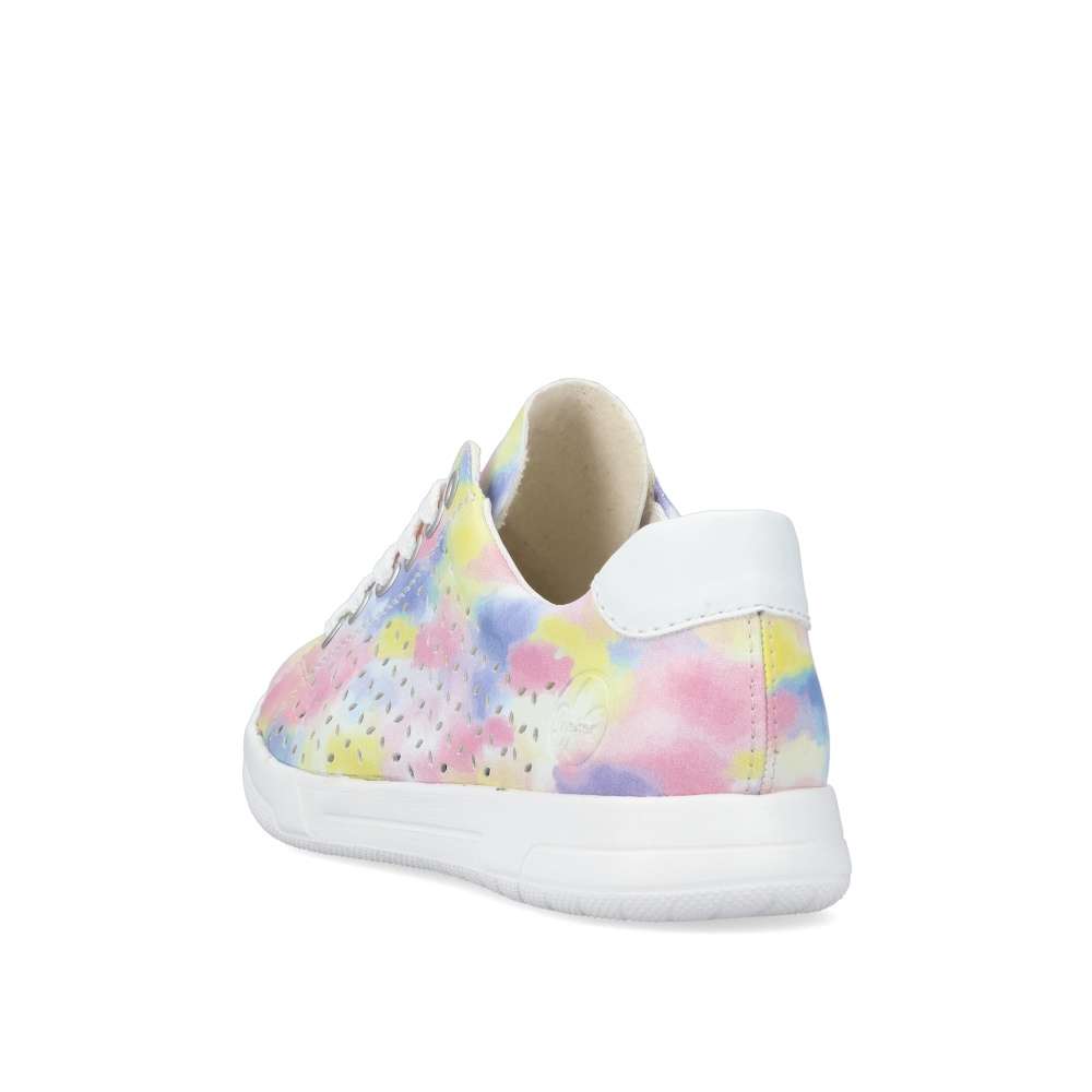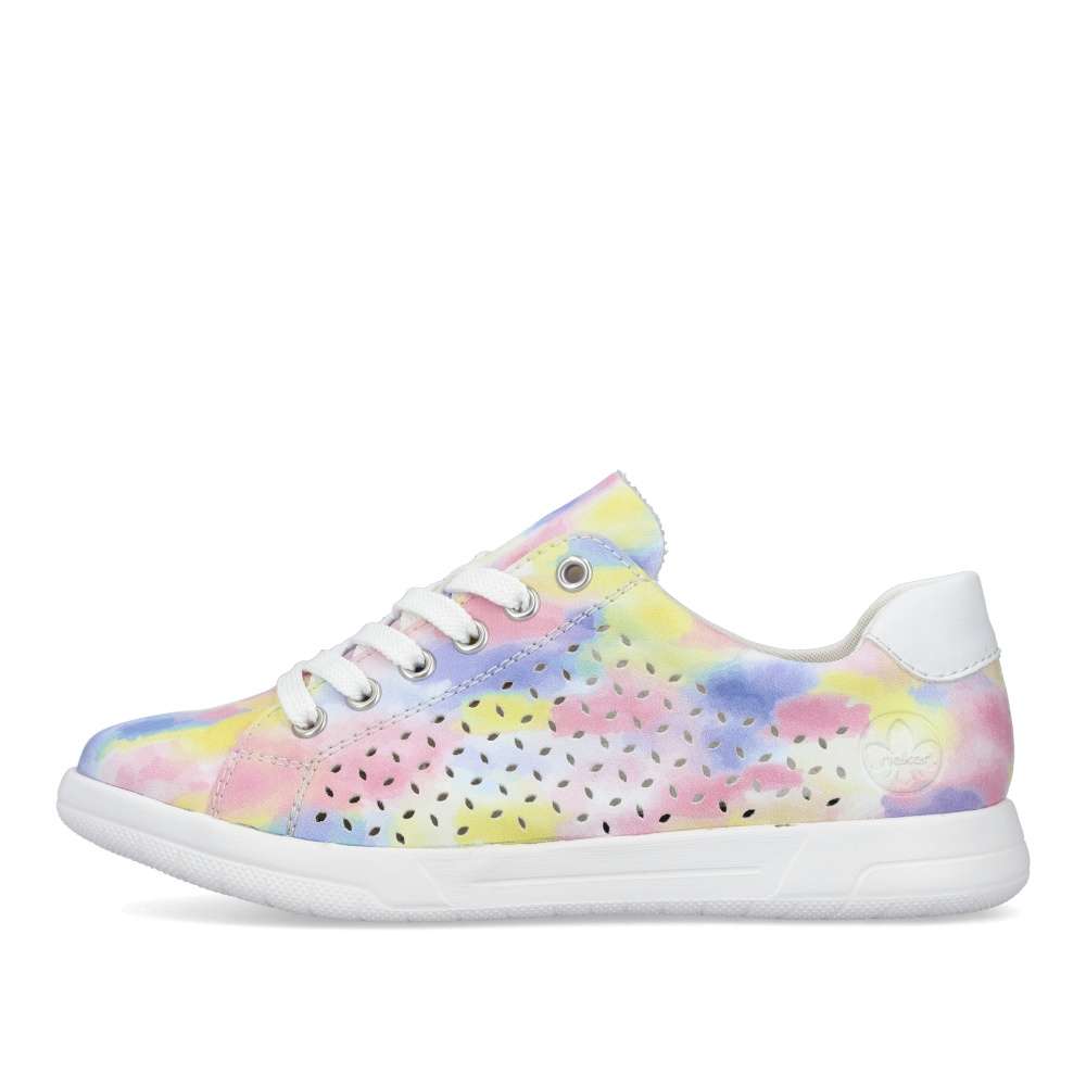 Detailní informace Nádherné tenisky RIEKER s perforací a nepřehlédnutelnou barevnou kombinací vykouzlí úsměv každým obutím. Navíc díky vyjímatelné měkké stélce a podešvi vybavené unikátní technologií ANTISTRESS nebudete chtít tyto krásky zout. Boty jsou na zavazování, tedy si je jednoduše přizpůsobíte přesně jak potřebujete. Jednoduše je sladíte k sukni, šatům, šortkám i kalhotám. Tento model nesmí chybět ve Vašem nákupním košíku.