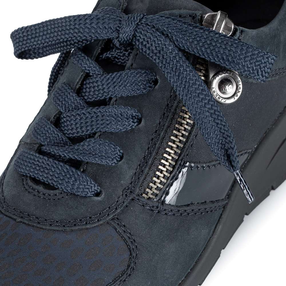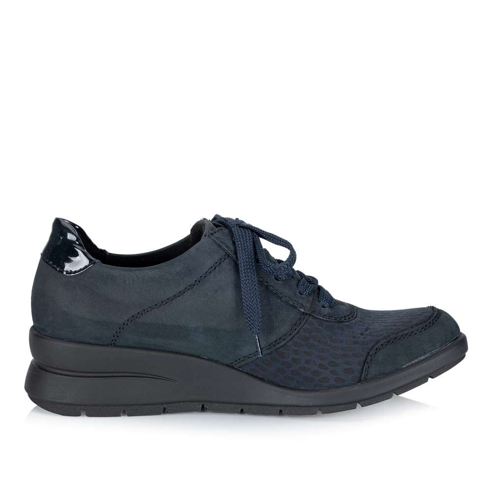 Tento designový model dámských tenisek městského stylu oceníte na Vašich pochůzkách po městě. Jemně prošívaný kožený svršek je poskládán z několika různě strukturovaných textilních částí, které spolu utváří jedinečný vzhled obuvi. Pro rychlé nazouvání Vám poslouží funkční zip a šněrováním si obuv přizpůsobíte dle požadavků. Vyjímatelná stélka je příjemně měkká a zajistí tak maximální pohodlí po celý den. Lehkost a pohodlí, to jsou znaky těchto tenisek, které budou Vašim parťákem při celodenním nošení.