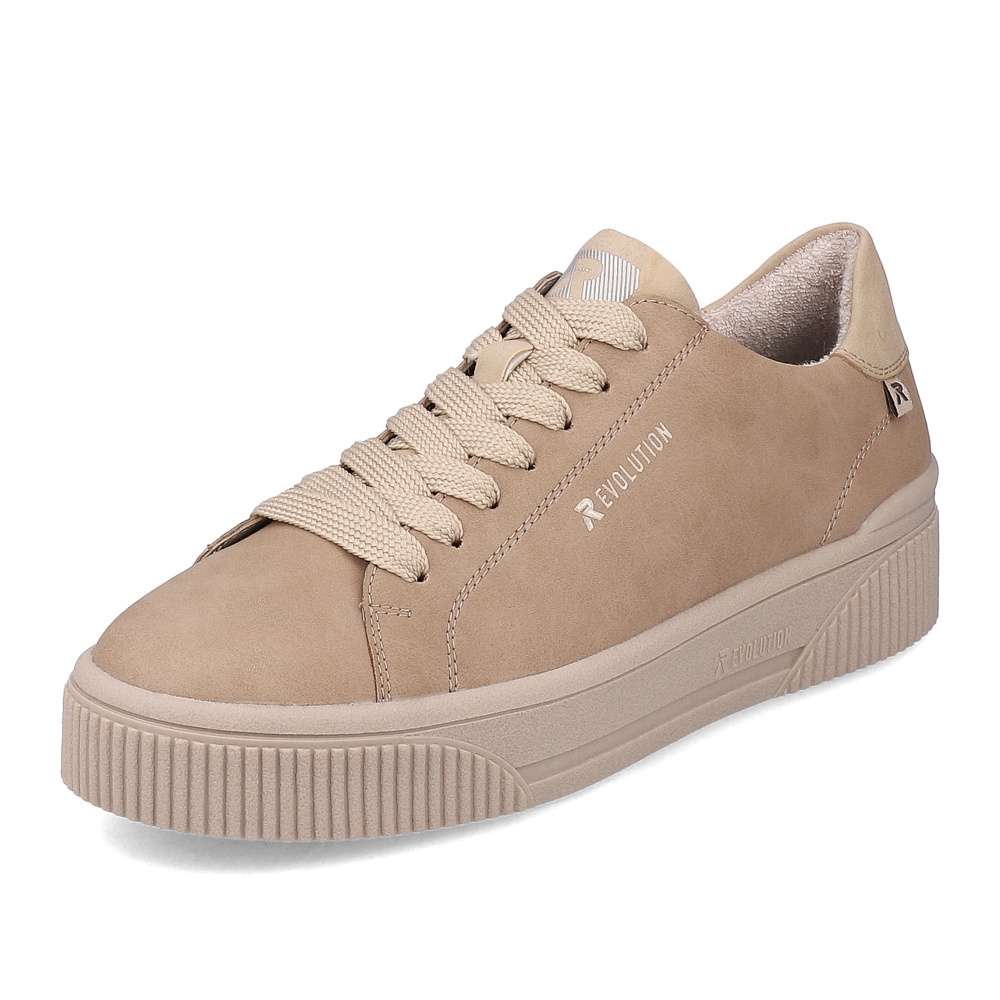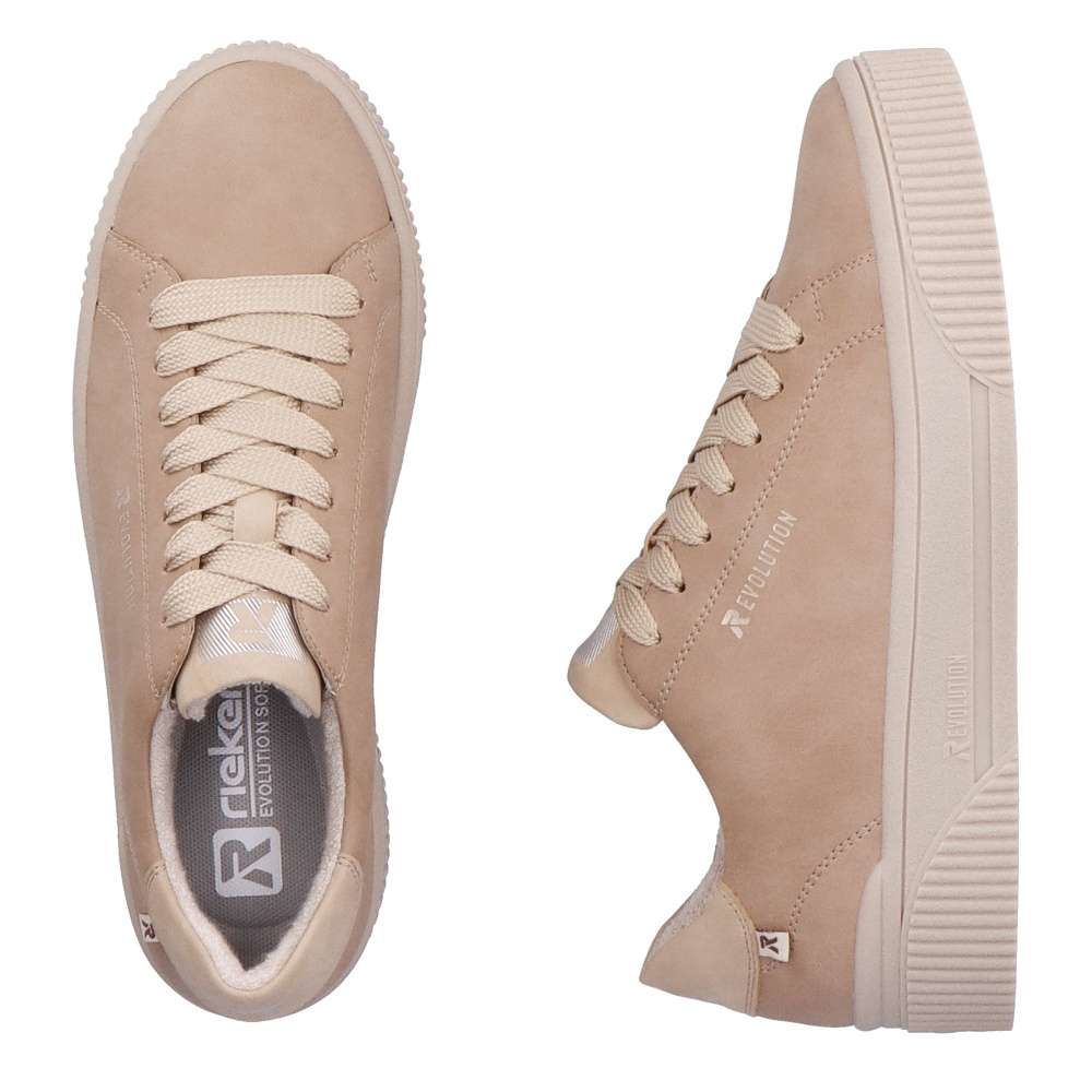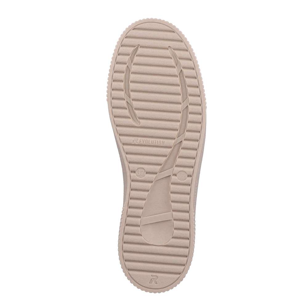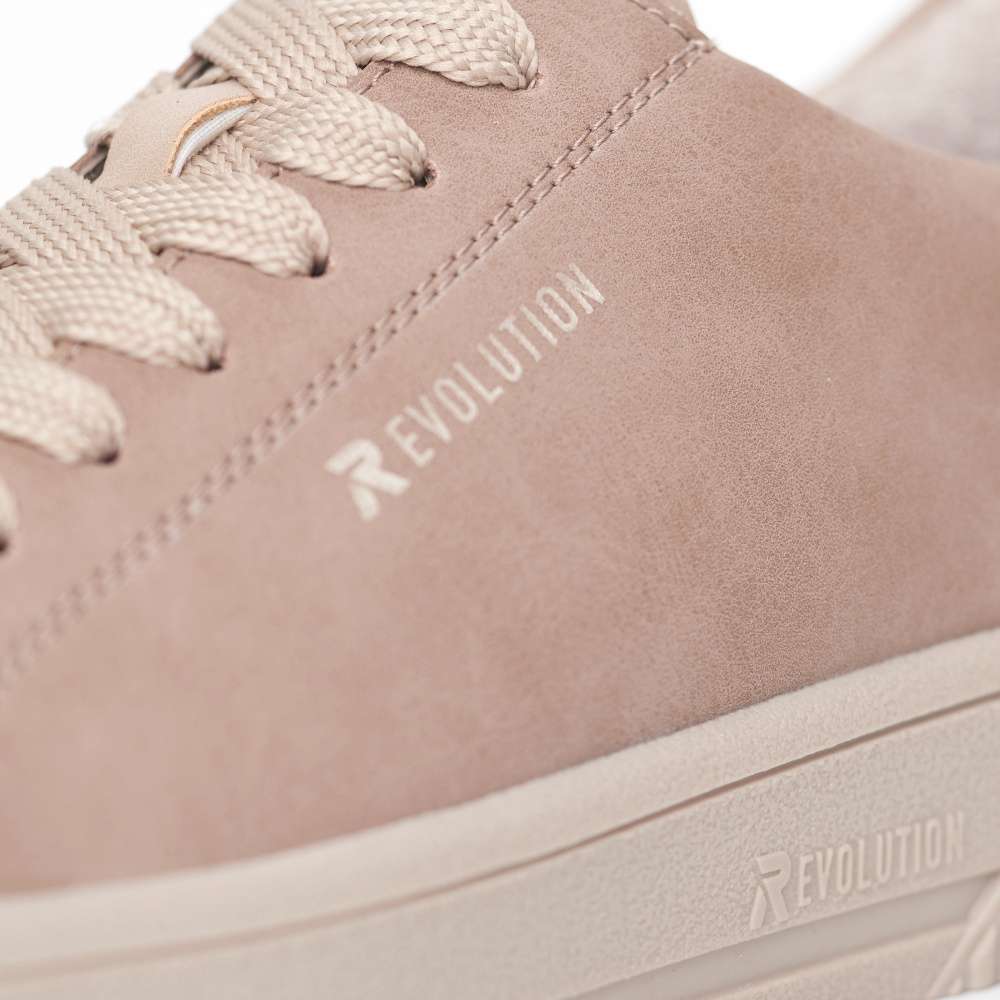 Rieker Revolution je nová řada moderní sportovní obuvi s obrovským důrazem na komfort a pohodlí i při celodenním nošení. Tyto dámské stylové tenisky s koženým svrškem světlé barvy doplněným šněrováním pro usnadnění obutí jsou ideálním obutím každého dne. Obuv má vyšší podešev což vytváří moderní vzhled a vyjímatelná stélka dodá pocit pohodlí při každém kroku. Udělejte si radost a obohaťte Váš šatník něčím novým a výjimečným. Technologie: RevolutionSoft – unikátní stélka, která změkčuje došlap a přizpůsobí se tvaru Vašeho chodidla. Tato bota je vybavena vyjímatelnou stélkou.