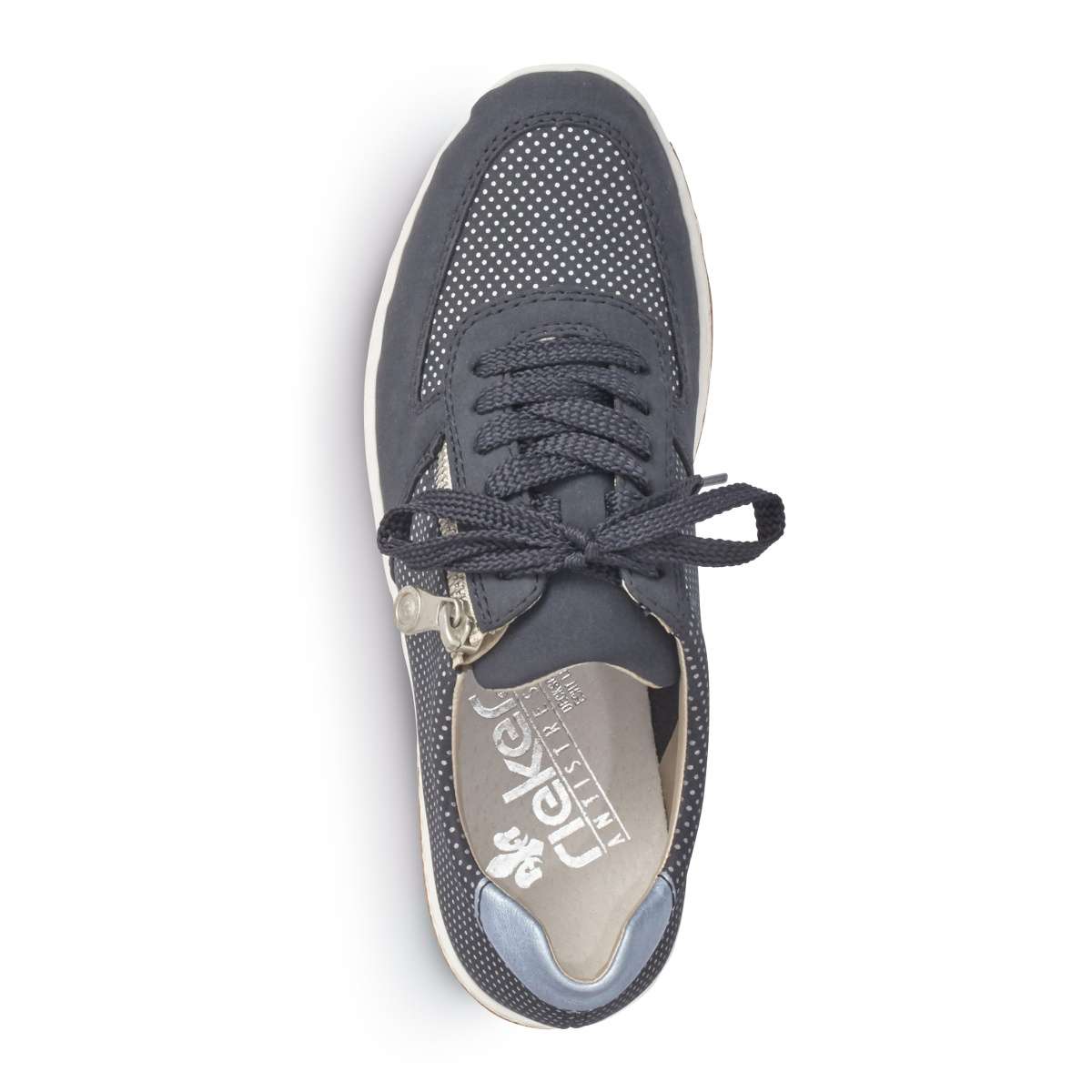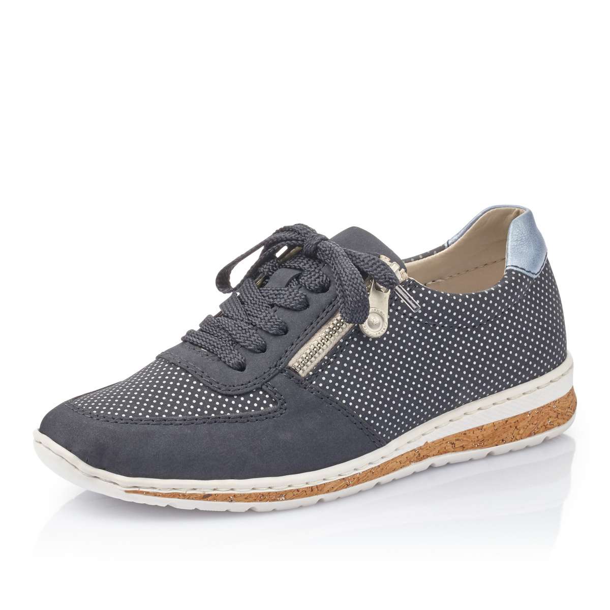 Tyto městské tenisky značky RIEKER Vás zaujmou na první pohled. Ve dvou barevných kombinací skvěle doplní Váš botník. Pro snadné nazouvání slouží šněrování, ale také stylový funkční zip na vnější straně. Bílá podešev je doplněna korkovým pruhem a je díky technologii Antistress lehká a flexibilní. Stélka je na došlap měkká a velmi pohodlná. Tenisky budou tím správným doplňkem každého Vašeho outfitu.