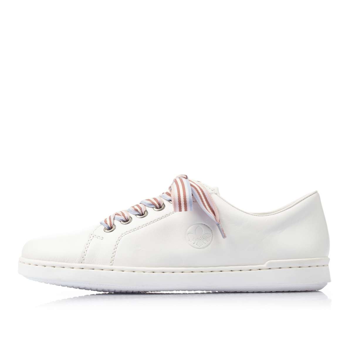 Hladký kožený svršek je jen lehce zdoben prošíváním a na vnější straně vtlačeným logem firmy Rieker. Snadné nazouvání a přizpůsobení dle Vašich požadavků zajistí šněrování.