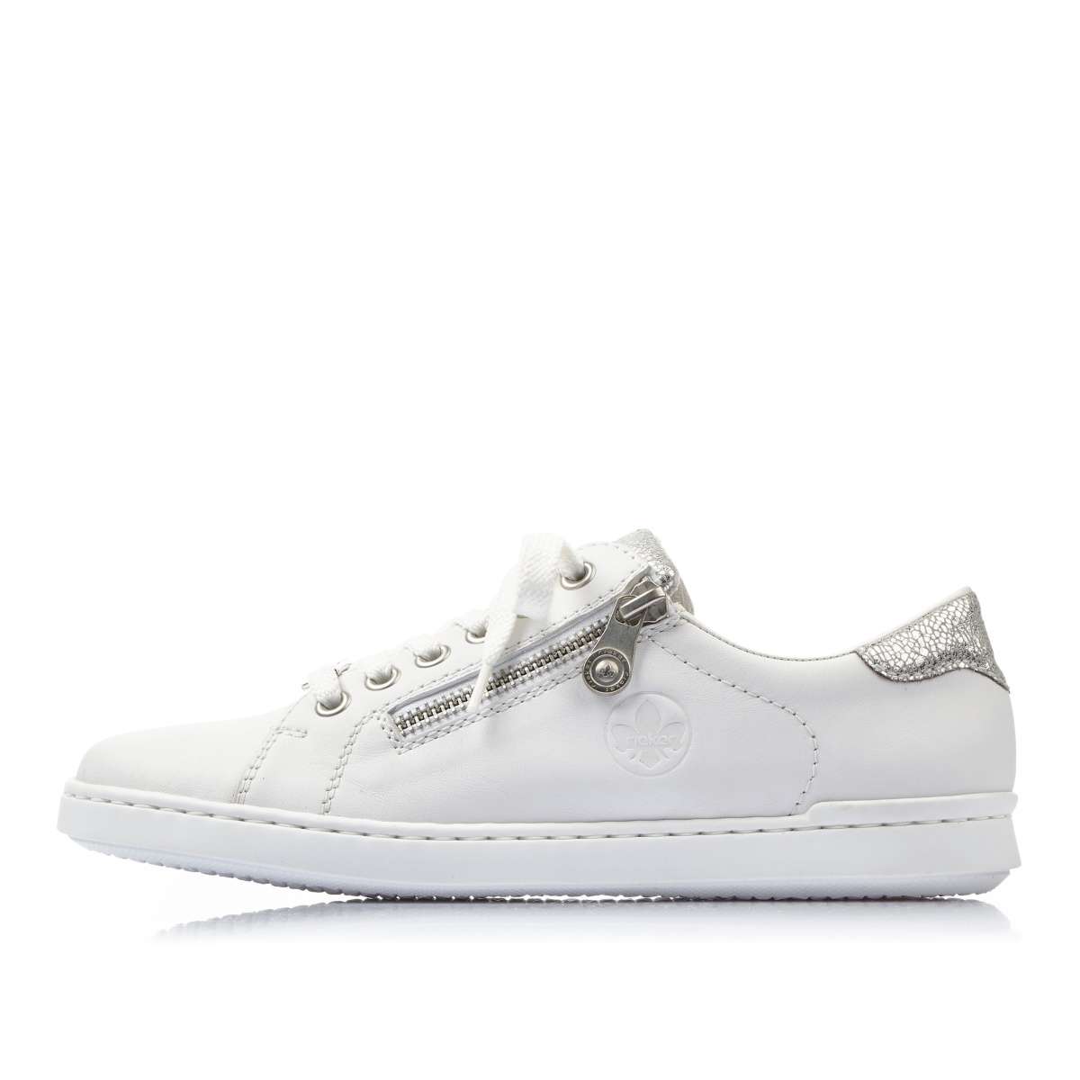 Detailní informace Dámské tenisky značky RIEKER, které budou Vaší společnicí po celý den. Svršek je vyroben z kvalitní hladké kůže a pro snadné obutí slouží zip na vnější straně a šněrování. Vyjímatelná stélka je vyrobena z kvalitního materiálu a poslouží jako společník po celý den, abyste se cítila komfortně při každém došlapu. Obuv je vhodná na každodenní nošení a bude se hodit k jakémukoliv outfitu.