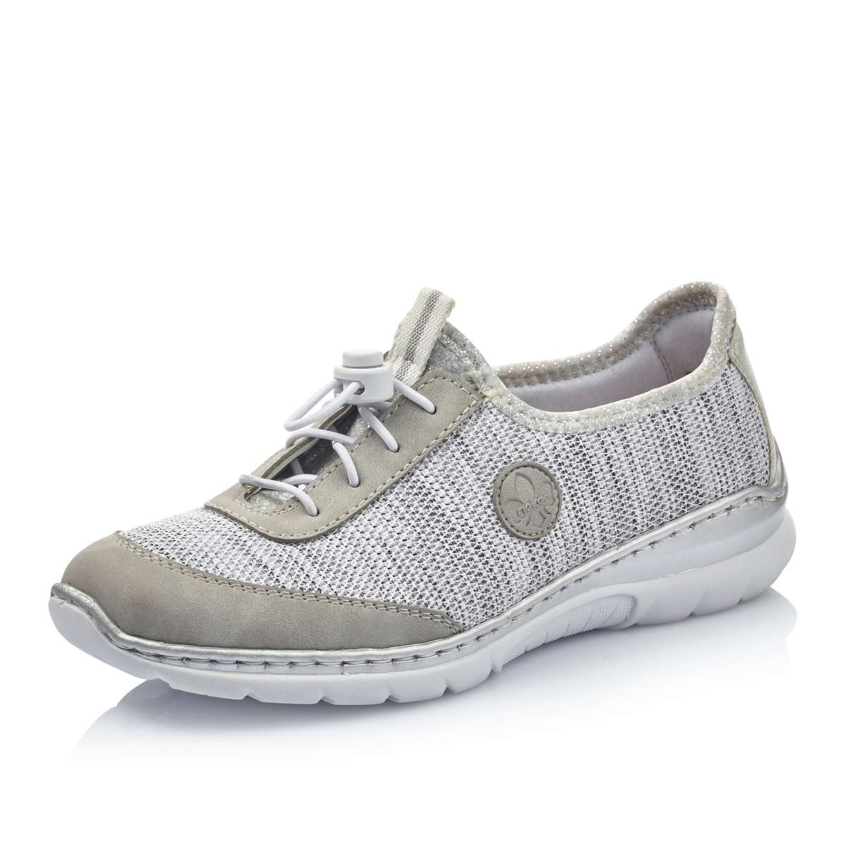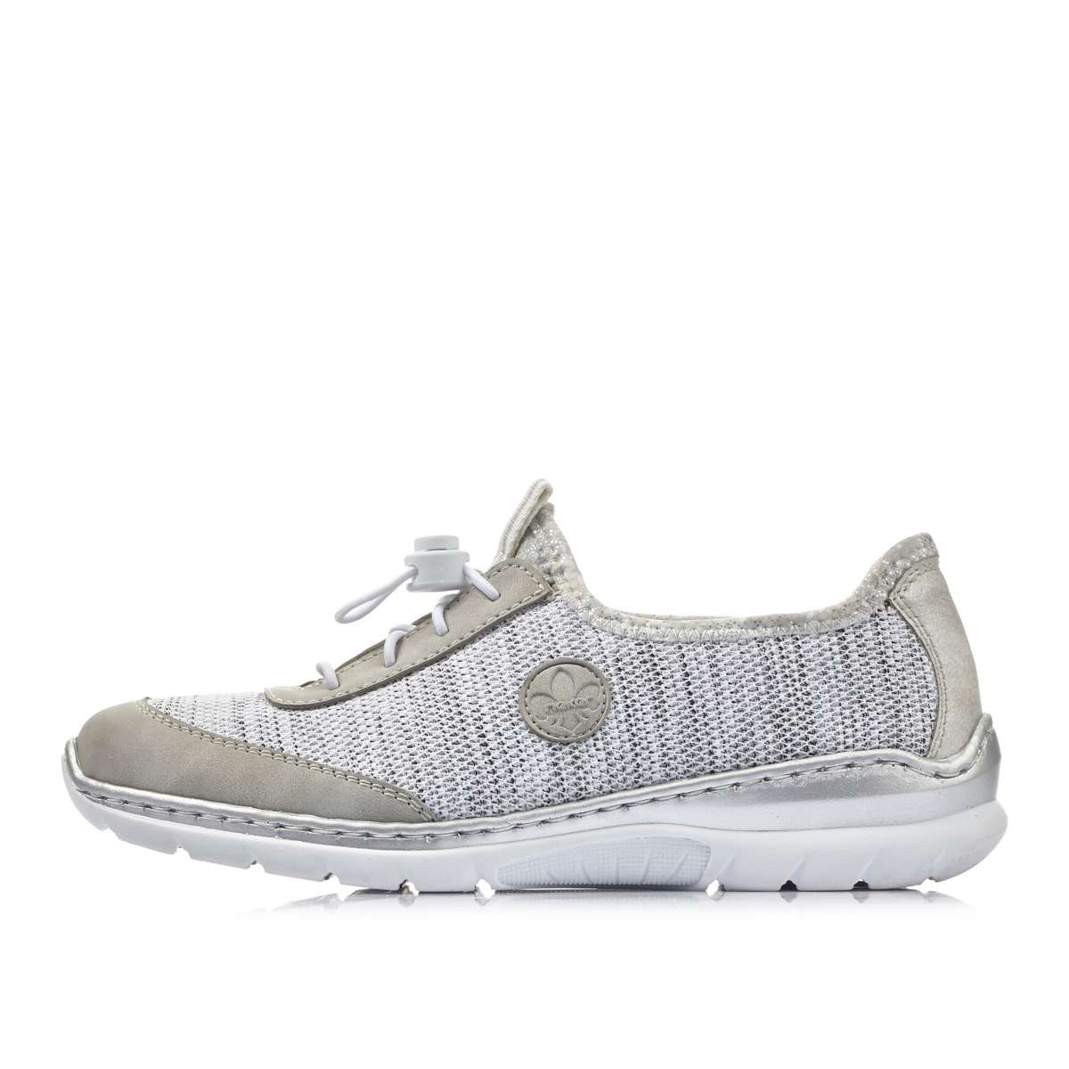 Tato dámská teniska značky Rieker Vás nadchne na první pohled. Kvalitní svršek je vyroben v kombinaci hladkého materiálu a vzdušného žíhaného pleteninového materiálu. Celkový vzhled doplní prošívání, logo značky na vnější straně a šedé lemování podešve. Šněrování na pružné gumičky Vám pomůže s přizpůsobením obuvi dle svých potřeb a můžete si je obout snad ke každému outfitu.