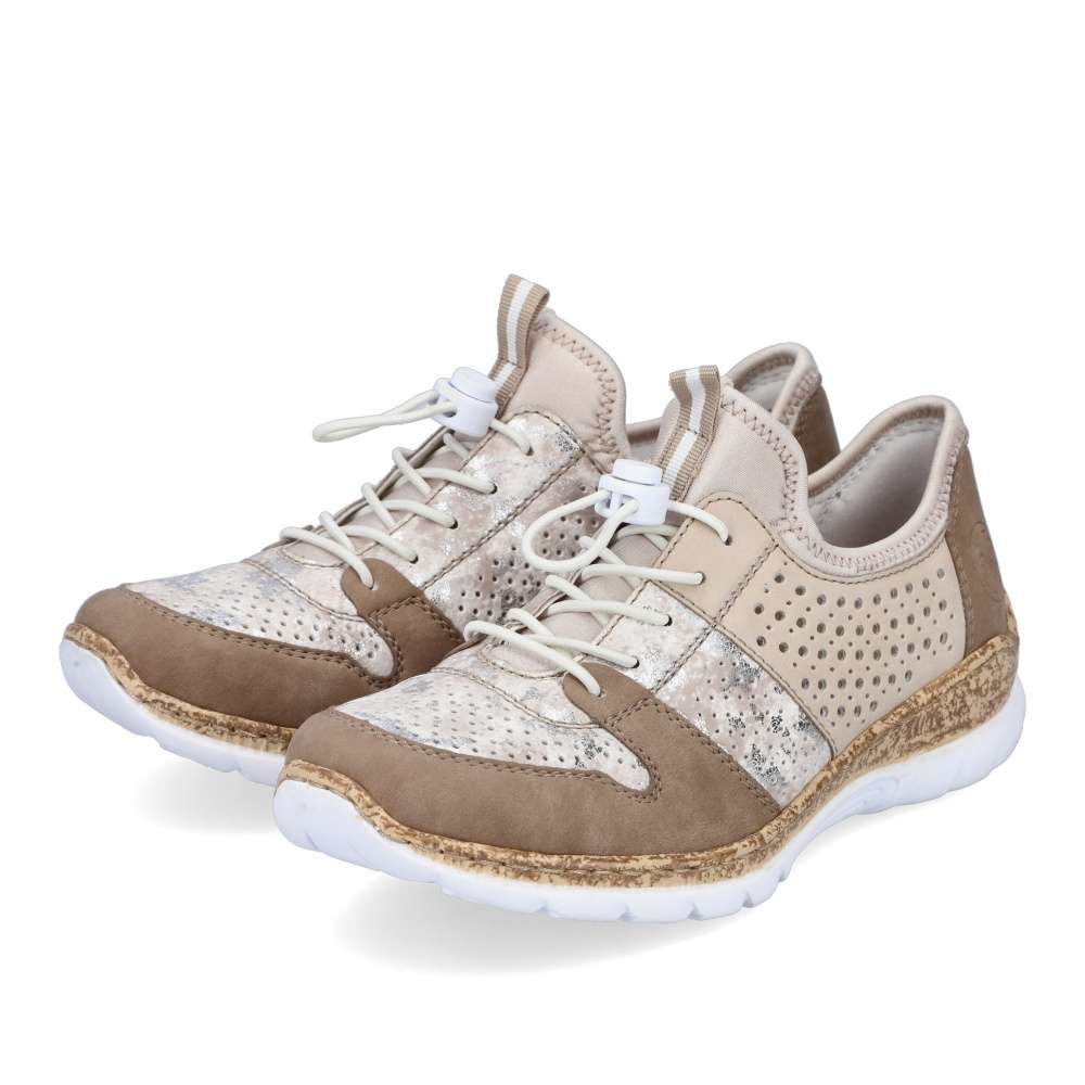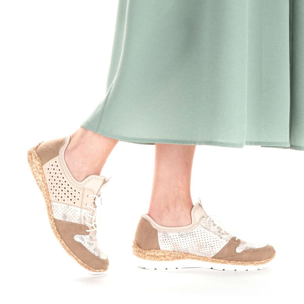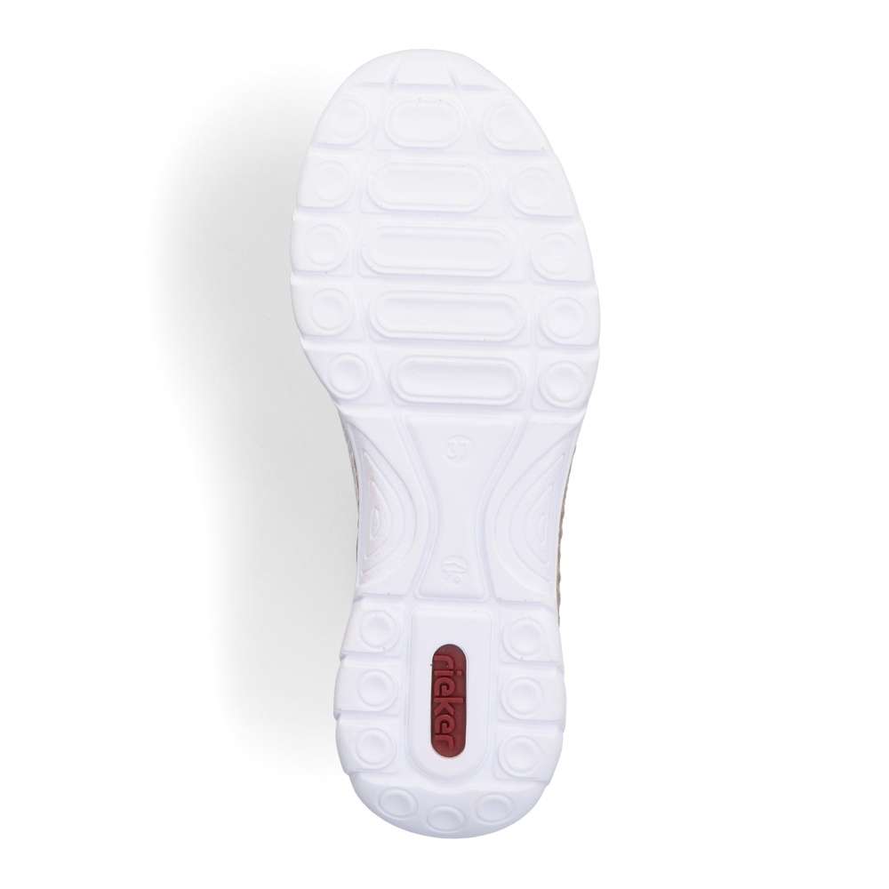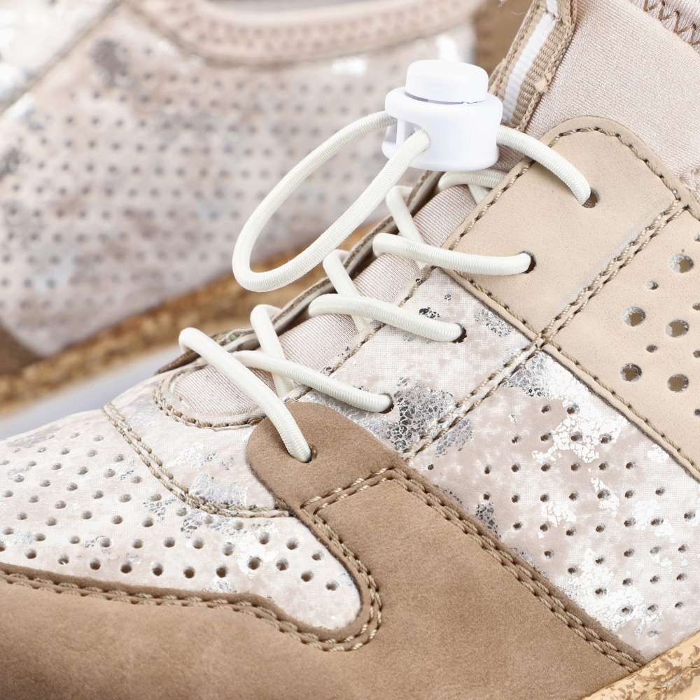 Unikátní vzhled těmto polobotkám značky RIEKER dodává neotřelé spojení různobarevných částí. Svršek složený z několika částí je spojen prošíváním, ale také doplněn perforací, která zajistí odvětrávání obuvi. Snadné nazouvání zajistí pružné lemování horního okraje, pruhované poutko a šněrování pružnou gumičkou, které lze snadno utáhnout či povolit. Unikátní textilní stélka z paměťové pěny změkčí došlap a přizpůsobí se tvaru Vašeho chodidla. Podešev v horní části s imitací korku je vyrobená s technologií Antistress díky níž je lehká a flexibilní. Tento model skvěle oživí Vaše outfity jak do práce, tak na pochůzky městem.