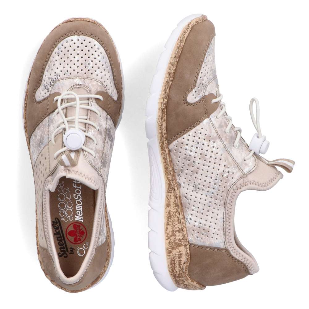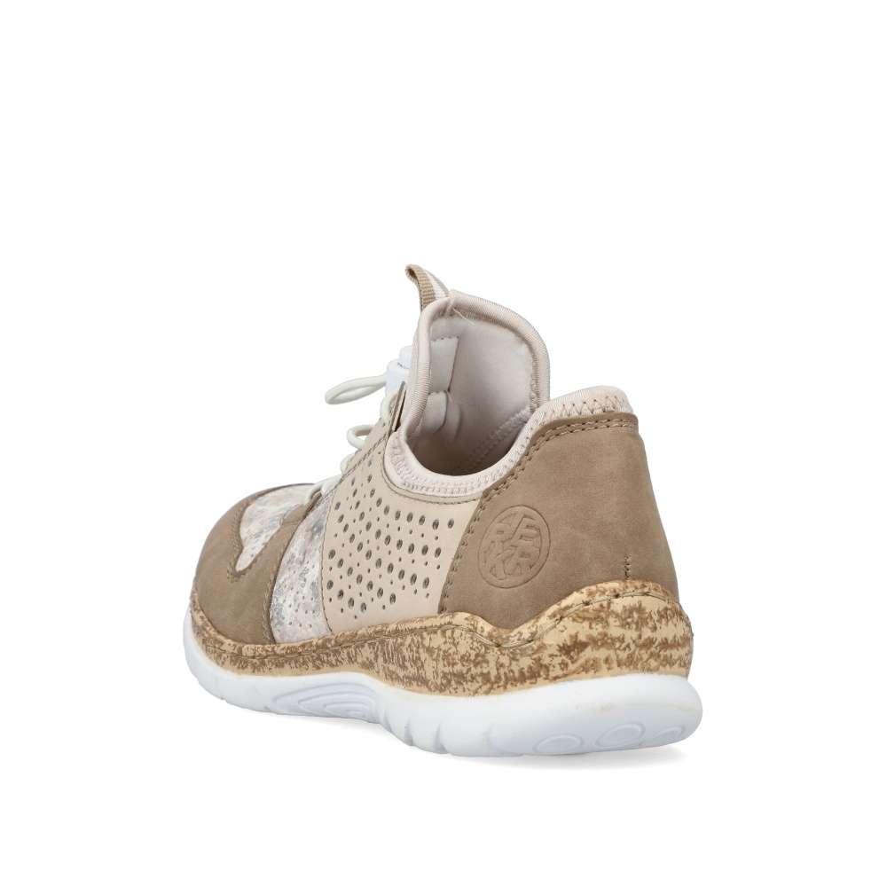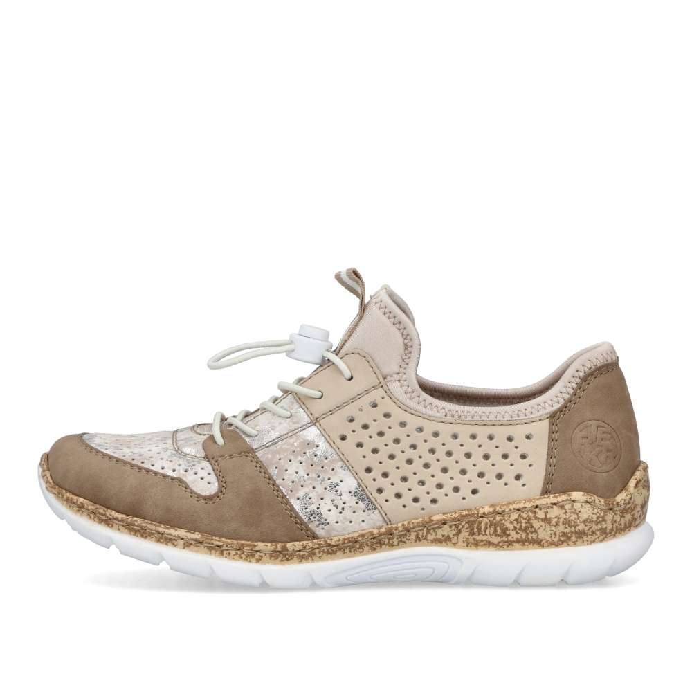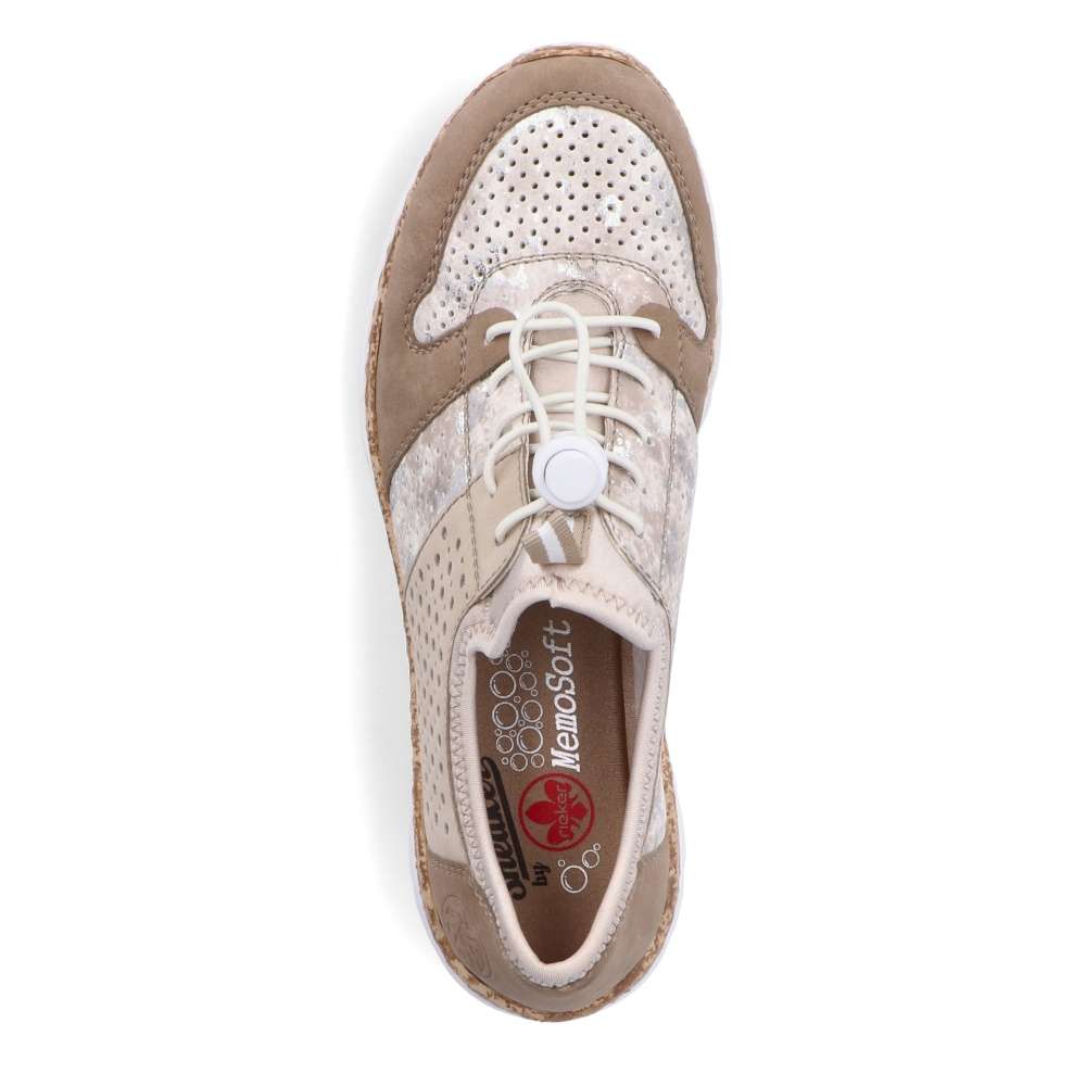Unikátní vzhled těmto polobotkám značky RIEKER dodává neotřelé spojení různobarevných částí. Svršek složený z několika částí je spojen prošíváním, ale také doplněn perforací, která zajistí odvětrávání obuvi. Snadné nazouvání zajistí pružné lemování horního okraje, pruhované poutko a šněrování pružnou gumičkou, které lze snadno utáhnout či povolit. Unikátní textilní stélka z paměťové pěny změkčí došlap a přizpůsobí se tvaru Vašeho chodidla. Podešev v horní části s imitací korku je vyrobená s technologií Antistress díky níž je lehká a flexibilní. Tento model skvěle oživí Vaše outfity jak do práce, tak na pochůzky městem.