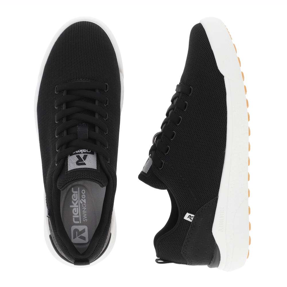 Detailní informace Rieker Revolution je nová řada moderní obuvi s obrovským důrazem na komfort a pohodlí i při celodenním nošení. Hledáte univerzální nižší botky, které se budou hodit ke všemu? Tak bychom Vám rádi představili tyto jednoduché krásky. Tyto tenisky z prodyšného textilního materiálu zdobí hladká patní část, nášivka na jazyku, kontrastní bílá podešev a šněrování, kterým si snadno upravíte dle požadavků. Extra měkká stélka je snadno vyměnitelná a lehká podrážka zajišťuje dobrou přilnavost a stabilitu každým krokem.