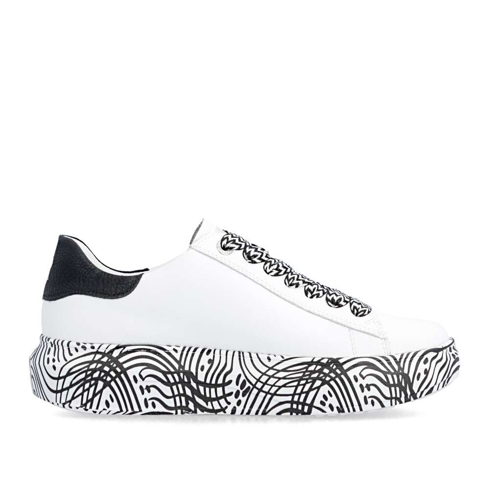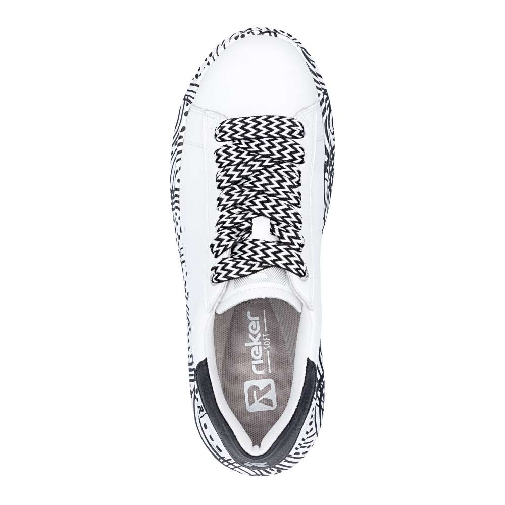 Tyto kožené tenisky od značky Rieker vás okouzlí na první pohled a ještě více při prvním obutí. Spojují v sobě výrazný módní design s komfortem, který si zamilujete při každodenním nošení. Bílý svršek působí čistě a kontrastní patní část dodává teniskám dynamický akcent. Výrazným prvkem jsou široké barevné šňůrky v efektním provedení, které modelu dodávají originální charakter a zároveň umožňují přizpůsobit obuv přesně podle vašich potřeb. Vyjímatelná stélka se postará o dokonalou oporu chodidla a její příjemná měkkost zajistí komfort při každém kroku. Robustní podrážka nejenže zaručuje výbornou stabilitu, ale zároveň podtrhuje trendy vzhled svým unikátním designem. Tento model je ideální volbou pro všechny, kdo chtějí zaujmout a zároveň se cítit maximálně pohodlně při svých každodenních aktivitách. Dokonalá souhra moderního vzhledu a maximálního pohodlí díky funkčním technologiím to jsou boty RIEKER Sport.
