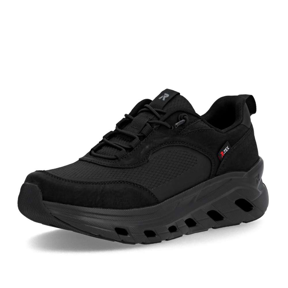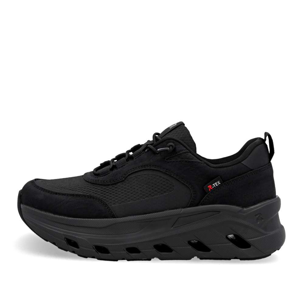 Užívejte si sportovní styl s botami značky RIEKER. Tyto tenisky RIEKER zaujmou působivou kombinací materiálů černého svršku. Díky nepromokavé vrstvě zůstanou vaše nohy v suchu i během nepříznivého počasí a nemusíte se obávat proměnlivého počasí chladnějších měsíců. Šněrování zajišťuje individuální přizpůsobení obuvi tvaru chodidla, navíc máte možnost dvou variant – klasická šňůrka nebo pružná gumička pro rychlé obutí bez potřeby šněrování. Celodenní komfort poskytuje vyjímatelná stélka svojí měkkostí a každý krok bude doprovázen stabilní podešví tlumící nárazy, která nabízí pevnou oporu při každém kroku. Její unikátní design dokonale doplňuje jedinečnost tohoto modelu, který bude spolehlivý a zároveň stylový doplněk každé z vás. Dokonalá souhra moderního vzhledu a maximálního pohodlí díky funkčním technologiím to jsou boty RIEKER Sport. Technologie: Antistress – díky čtyřem antistresovým vlastnostem – lehkosti, pružnosti, prostornosti a vynikající absorpci nárazů – vám boty RIEKER nabídnou komfortnější chůzi. NanoWater-Protect - speciální povrchová úprava vrchního materiálu jemnými nanočásticemi, které tvoří pevnou vazbu se svrškem obuvi a vytváří vrstvu odpuzující vodu a nečistoty. Rieker TEX - funkční vrstva, díky které je bota nepromokavá a přesto prodyšná. Rieker Soft – unikátní stélka vyrobená z prodyšného materiálu, která svým tvarem a materiálem zajistí pocit pohodlí při celodenním nošení. Tato bota je vybavena vyjímatelnou stélkou.