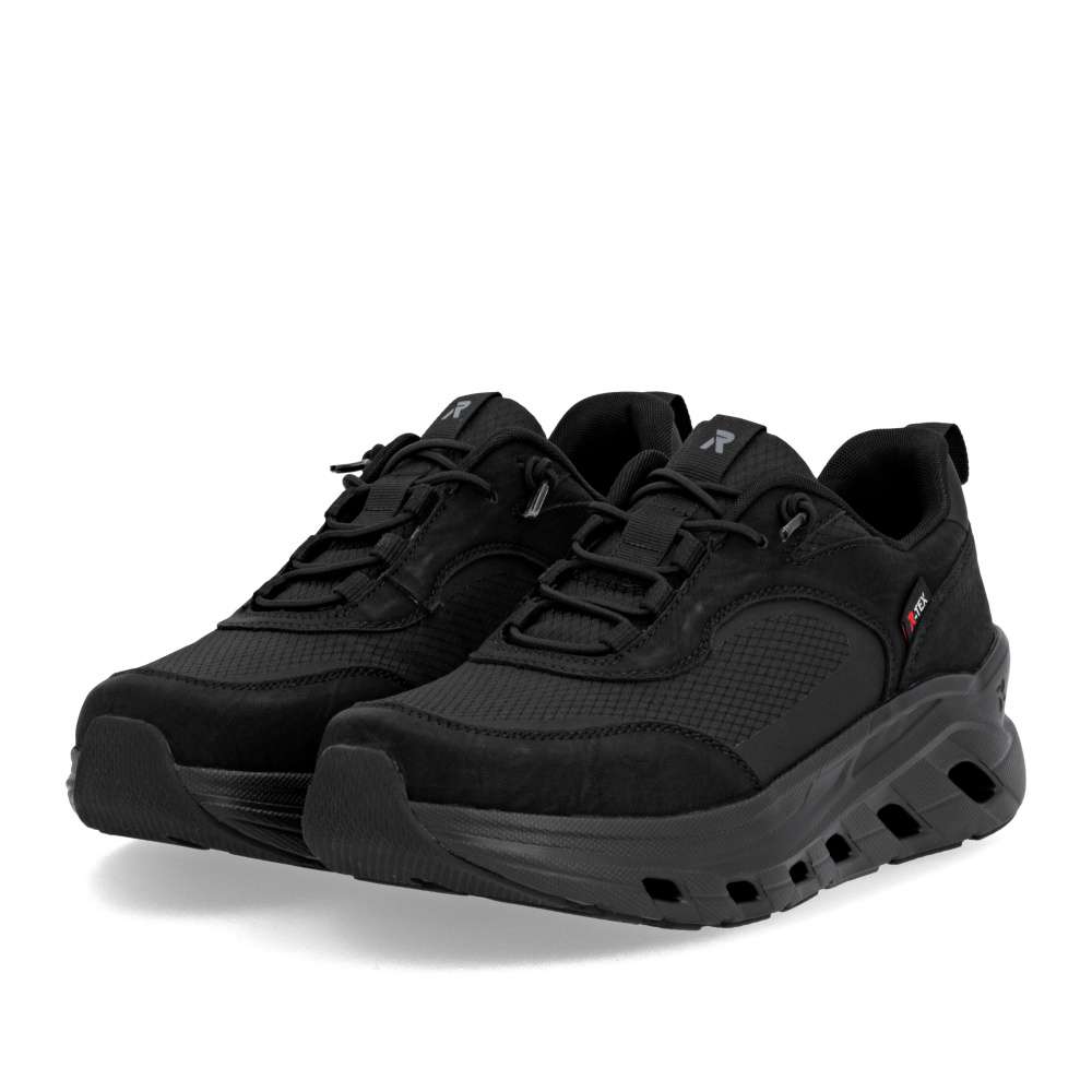Detailní informace Užívejte si sportovní styl s botami značky RIEKER. Tyto tenisky RIEKER zaujmou působivou kombinací materiálů černého svršku. Díky nepromokavé vrstvě zůstanou vaše nohy v suchu i během nepříznivého počasí a nemusíte se obávat proměnlivého počasí chladnějších měsíců. Šněrování zajišťuje individuální přizpůsobení obuvi tvaru chodidla, navíc máte možnost dvou variant – klasická šňůrka nebo pružná gumička pro rychlé obutí bez potřeby šněrování. Celodenní komfort poskytuje vyjímatelná stélka svojí měkkostí a každý krok bude doprovázen stabilní podešví tlumící nárazy, která nabízí pevnou oporu při každém kroku. Její unikátní design dokonale doplňuje jedinečnost tohoto modelu, který bude spolehlivý a zároveň stylový doplněk každé z vás. Dokonalá souhra moderního vzhledu a maximálního pohodlí díky funkčním technologiím to jsou boty RIEKER Sport.