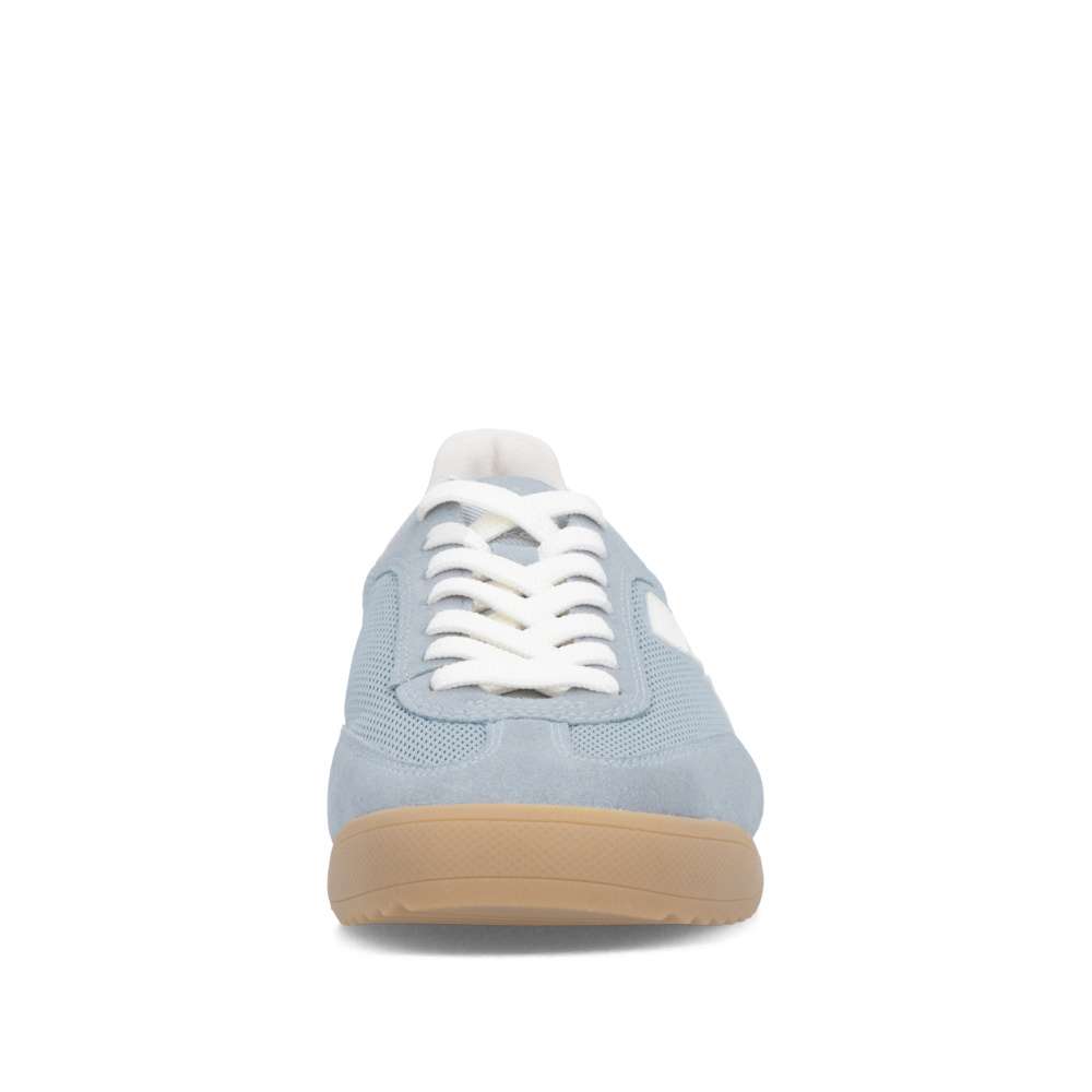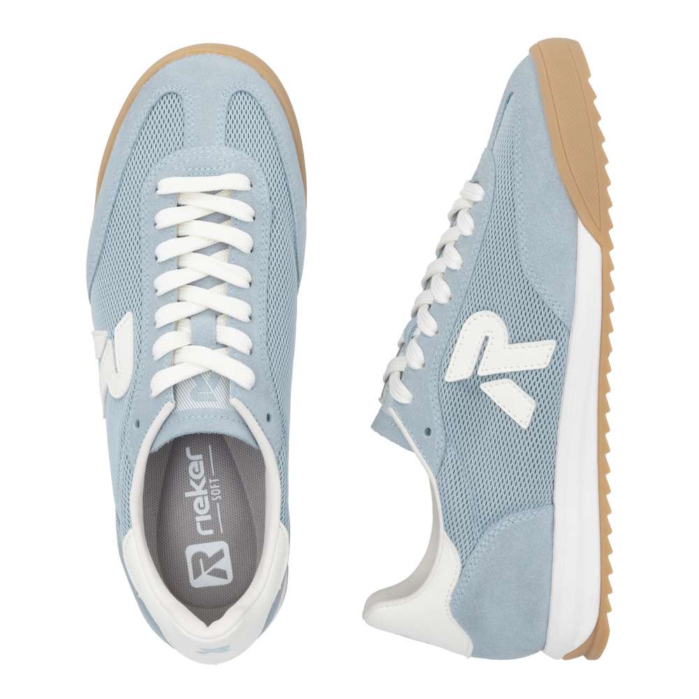 Tyto tenisky značky RIEKER představují dokonalé spojení módního stylu a komfortu, navržené pro ženy, které hledají nejen vizuální atraktivitu, ale také pohodlí při každodenním nošení. Svršek modré barvy kombinuje různé materiály a struktury, které dohromady vytvářejí harmonický kontrast a dodávají botám specifický vzhled. V oblasti paty se nachází barevně kontrastní aplikace, která vizuálně zaujme a podtrhuje jedinečný charakter obuvi. Výrazné logo značky na boku boty dodává prémiový vzhled a zaručuje autentičnost produktu. Šněrování umožňuje přesné přizpůsobení boty tvaru nohy a vyjímatelná, měkká stélka zajišťuje pohodlí i při delším nošení. Podešev je navržena tak, aby efektivně tlumila nárazy při každém kroku, zvyšovala stabilitu a zároveň dodávala botám jedinečný vzhled. Tyto tenisky jsou navrženy tak, aby poskytovaly komfortní obuv na celý den, ať už jde o procházky městem, práci nebo volnočasové aktivity. Dokonalá souhra moderního vzhledu a maximálního pohodlí díky funkčním technologiím to jsou boty RIEKER Sport.