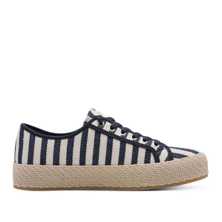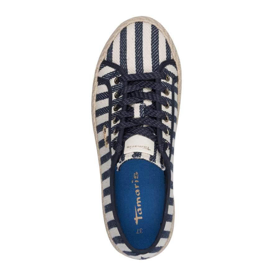 V každé situaci vás tenisky Tamaris doprovodí s dokonalým komfortem a vizuální atraktivitou, která zaujme na první pohled. O působivý vzhled se stará textilní svršek v působivém provedení linií kontrastních barev a decentní logo značky Tamaris podtrhuje originalitu. Šněrování umožňuje snadné přizpůsobení obuvi tvaru nohy, takže každý krok je jistý, stabilní a pohodlný. Vyšší podešev dodává teniskám nejen módní vzhled, ale také podporuje stabilitu při chůzi. Tyto tenisky nejsou jen obyčejnou obuví – jsou spolehlivým partnerem pro aktivní a stylový životní styl. Kombinují moderní design a mimořádné pohodlí v jednom celku, díky čemuž se budete cítit sebevědomě, žensky a komfortně při každé příležitosti.