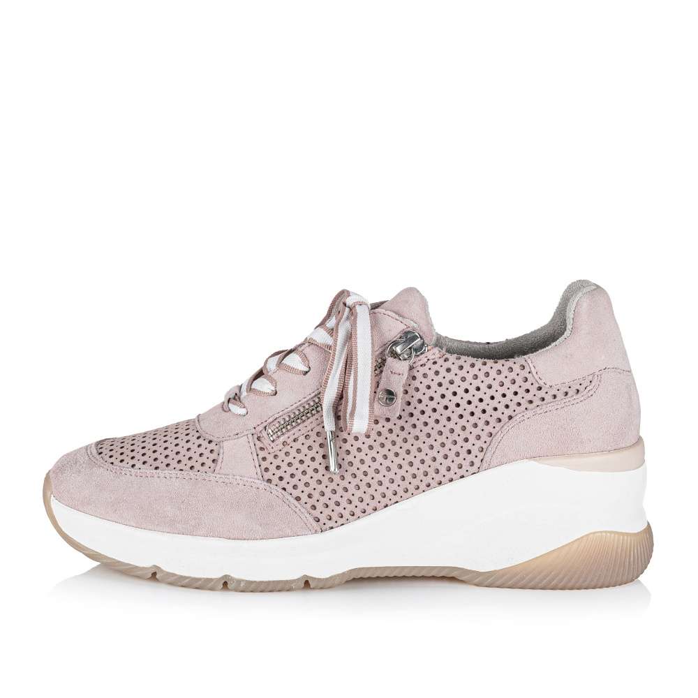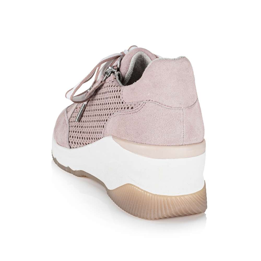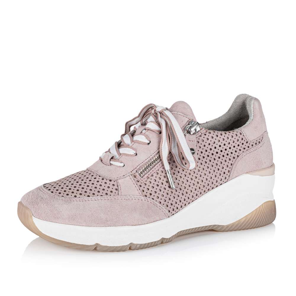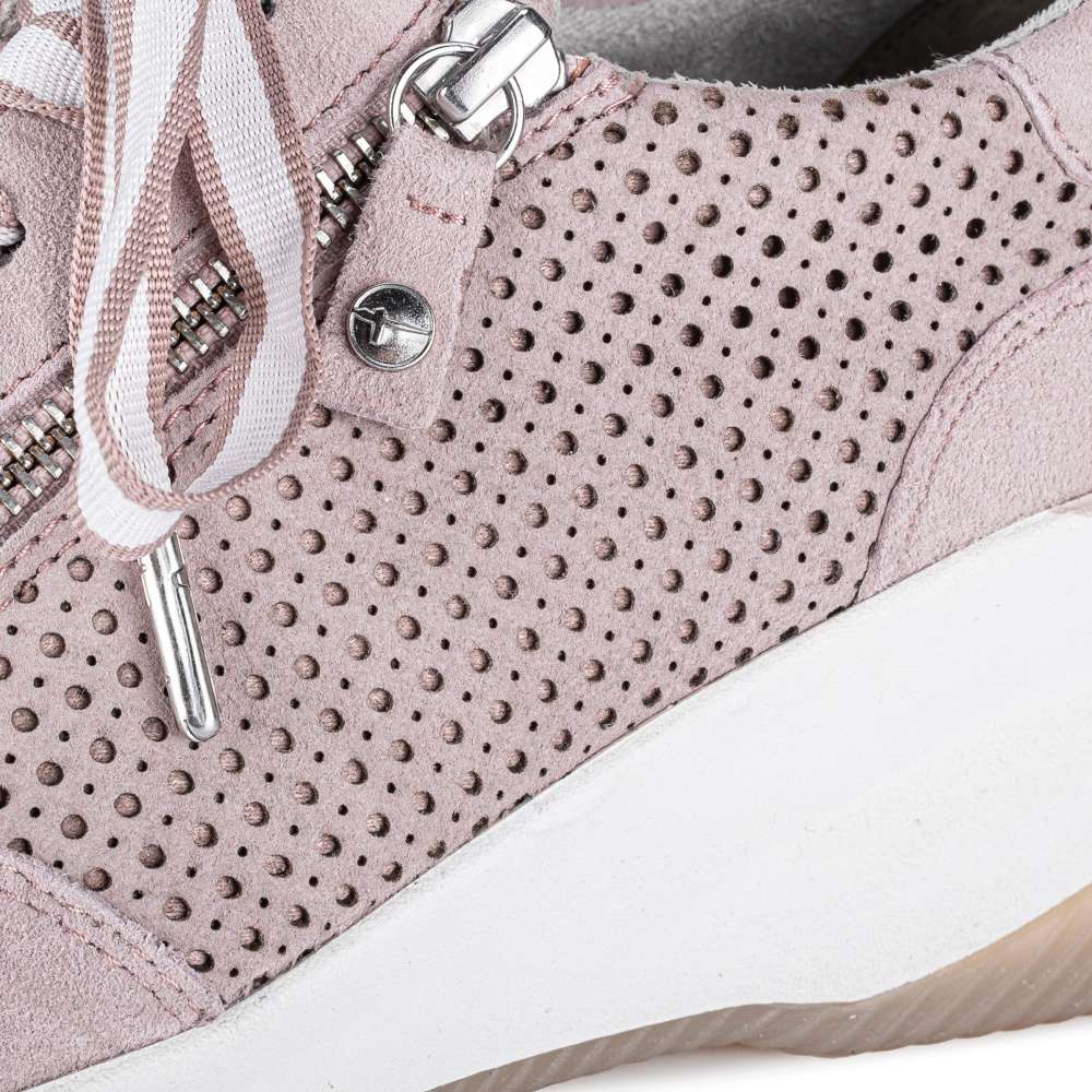 Chcete se cítit skvěle na každém kroku? Potom nesmí Vaší pozornosti uniknout tyto dámské tenisky. Vysoká podrážka Vám zaručí to nejvyšší pohodlí. Svršek i stélka jsou vyrobeny z kůže, povrchová perforace dodá teniskám ten správný šmrnc. Při obouvání si můžete vybrat mezi klasickými šňůrkami nebo zipem. Tak neváhejte a přivítejte jaro s těmito krásnými teniskami.