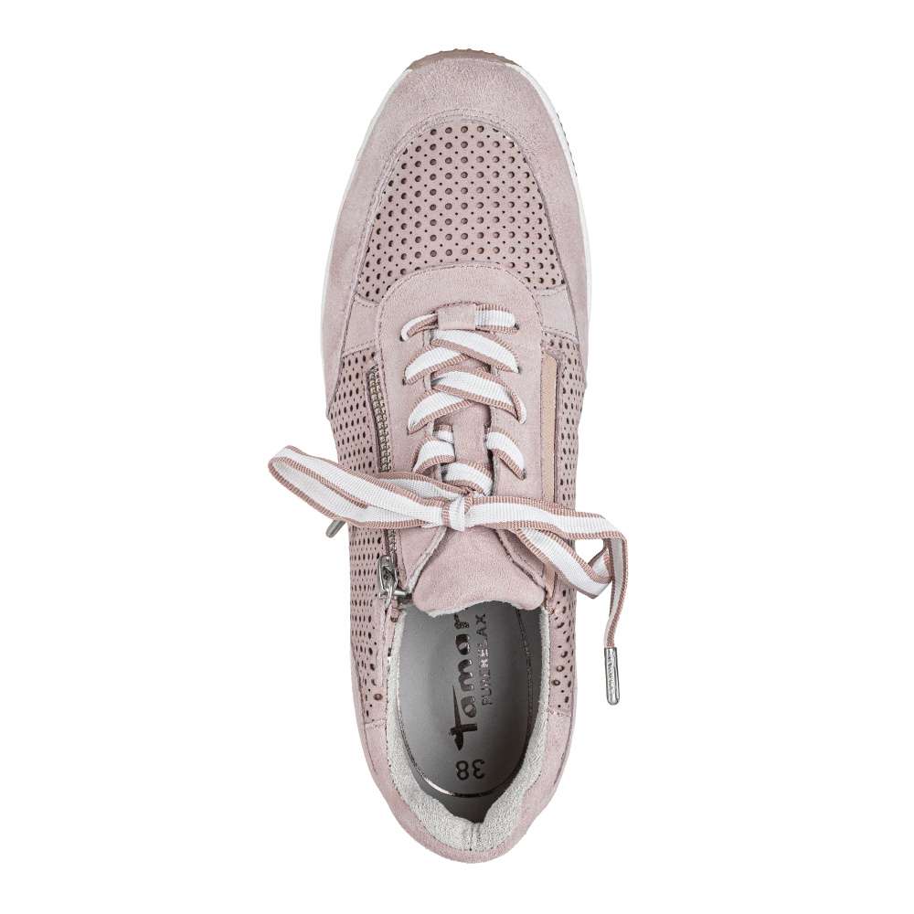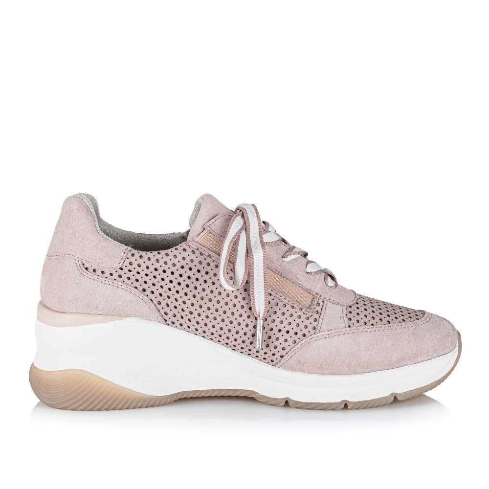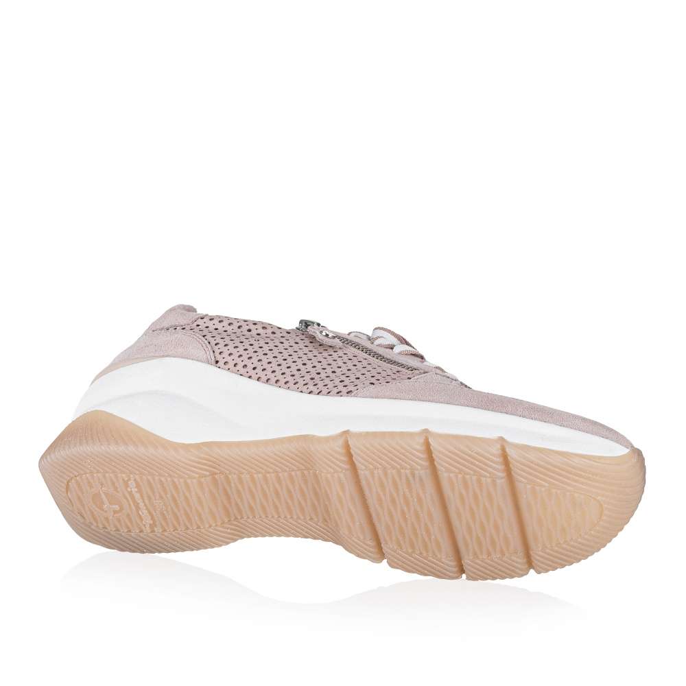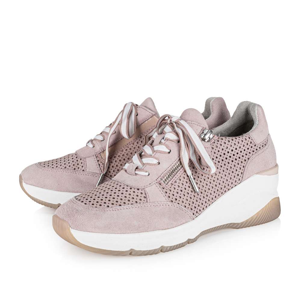 Chcete se cítit skvěle na každém kroku? Potom nesmí Vaší pozornosti uniknout tyto dámské tenisky. Vysoká podrážka Vám zaručí to nejvyšší pohodlí. Svršek i stélka jsou vyrobeny z kůže, povrchová perforace dodá teniskám ten správný šmrnc. Při obouvání si můžete vybrat mezi klasickými šňůrkami nebo zipem. Tak neváhejte a přivítejte jaro s těmito krásnými teniskami.