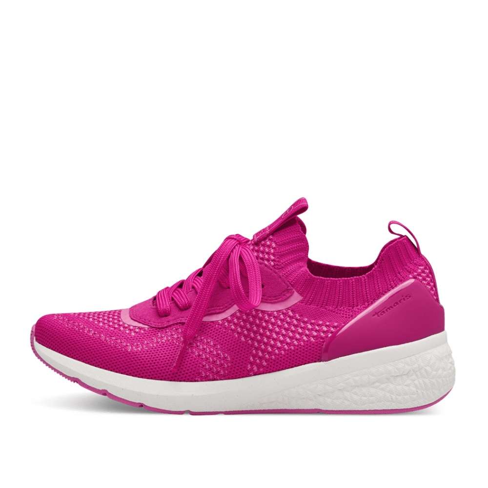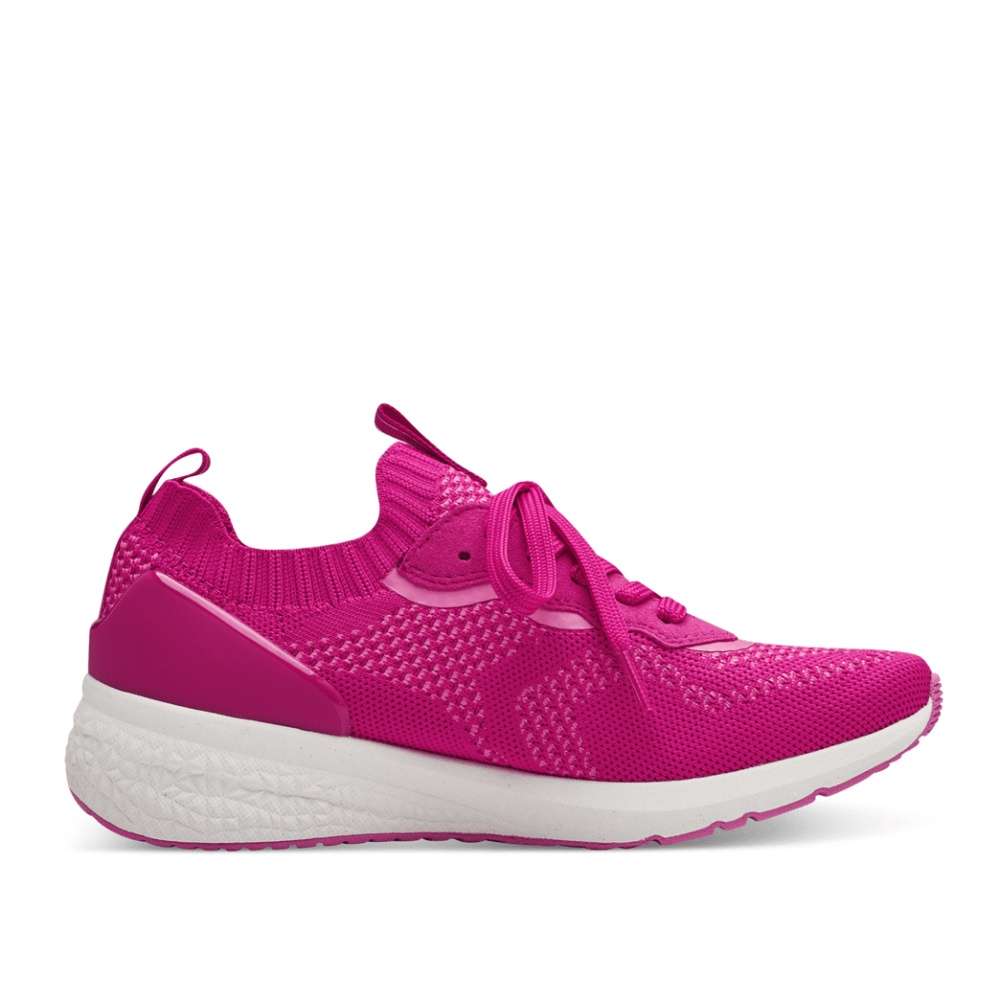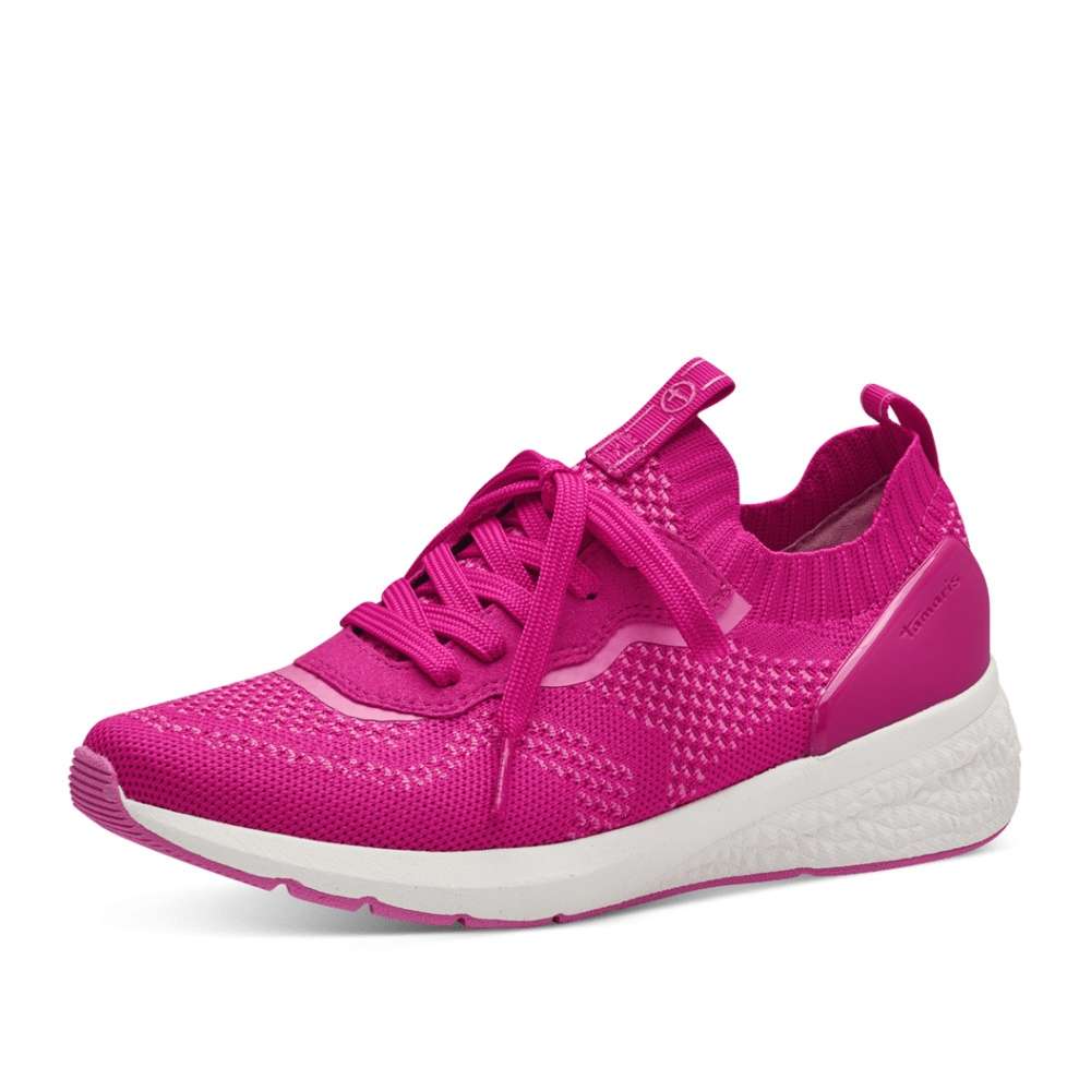 Výrazně růžové tenisky od Tamaris jsou nepřehlédnutelným módním doplňkem. Jejich textilní svršek s pružným lemem kolem kotníku a šněrováním nabízí nejen stylový vzhled, ale také pohodlné nošení. Měkká vyjímatelná stélka zajišťuje individuální podporu a kontrastní bílá podešev přidává do celkového designu zajímavý akcent a zároveň je flexibilní, což zvyšuje pohodlí a stabilitu při chůzi. Tyto tenisky jsou nejen módním doplňkem, ale také praktickou volbou pro aktivní životní styl. Technologie: Tato bota je vybavena vyjímatelnou stélkou.