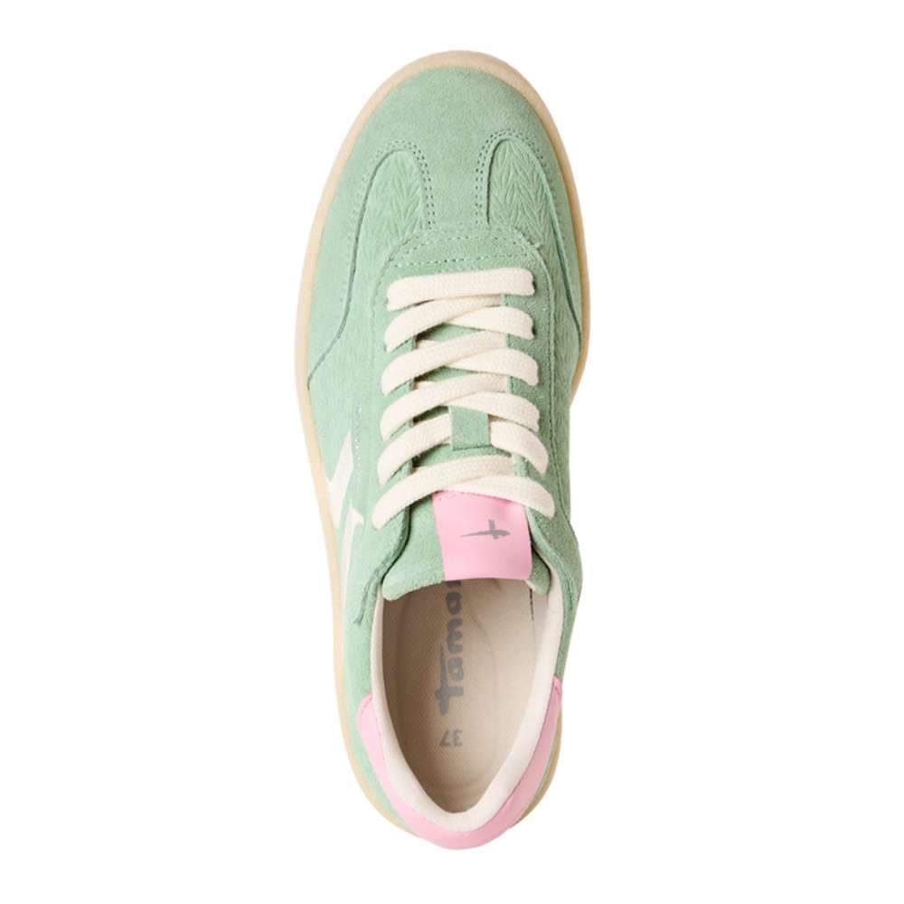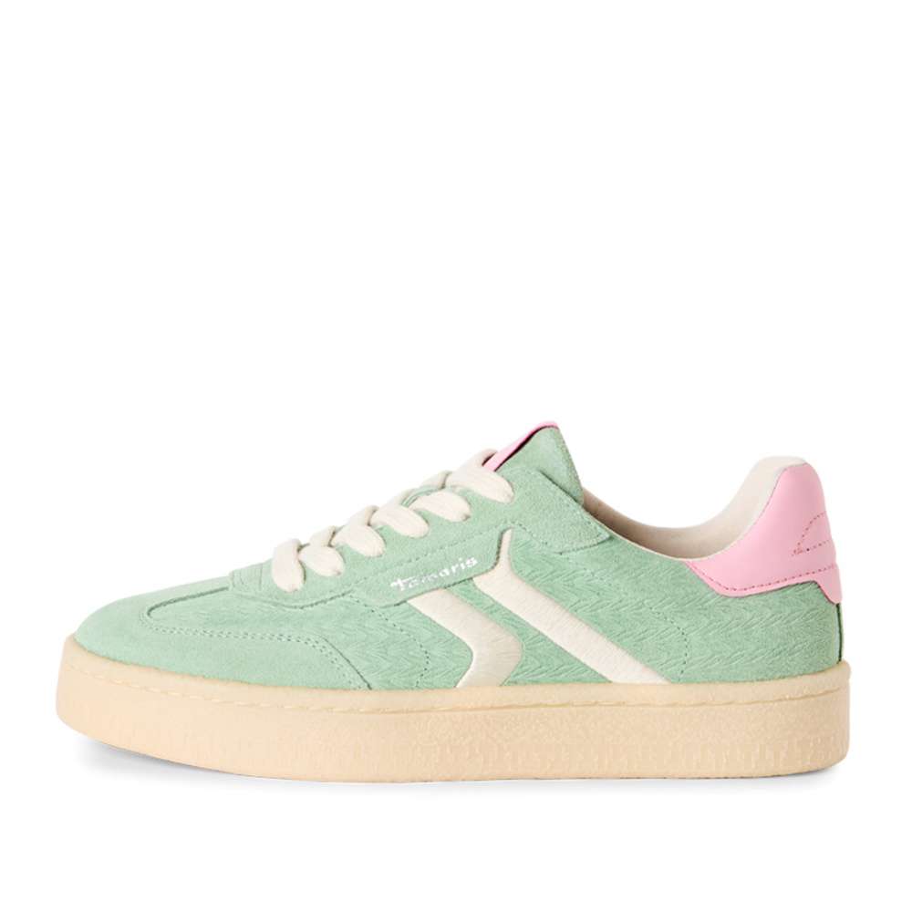 Originální tenisky značky Tamaris přinášejí moderní styl, který osvěží každý outfit. Zelený svršek, doplněný jemným vzorem a růžovými akcenty, tvoří nápaditý vzhled, který zaručeně upoutá pozornost a podtrhne váš jedinečný styl. Šněrování umožňuje dokonalé přizpůsobení boty vaší noze, zatímco měkká vyjímatelná stélka poskytuje maximální pohodlí po celý den. Tento model je ideální volbou pro ženy, které si chtějí užít pohodlí a zároveň vypadat skvěle každý den.