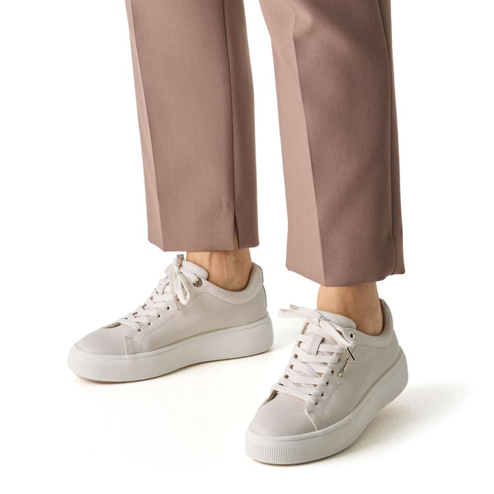 Detailní informace Tyto tenisky Tamaris dokonale potvrzují, že v jednoduchosti je skutečně krása. Díky svému čistému, minimalistickému designu se stanou univerzálním doplňkem vašeho šatníku. Kožený svršek působí sofistikovaně a je doplněn pouze jemným logem značky u šněrování, které botám dodává decentní, ale rozpoznatelný vzhled. Šněrování zároveň umožňuje přizpůsobit botu tvaru nohy a zajistit dokonalé pohodlí při každém kroku. Dominantním prvkem designu je vyšší podešev, která nejen podtrhuje moderní vzhled obuvi, ale také poskytuje stabilitu při chůzi. K dokonalému komfortu přispívá i měkká vyjímatelná stélka, jež se přizpůsobí tvaru chodidla a poskytne vašim nohám výjimečné pohodlí i po celodenním nošení. Tyto tenisky jsou ideálním společníkem pro ženy, které milují funkčnost a nadčasový styl. Každý detail je navržen tak, aby vám poskytl dokonalou rovnováhu mezi módou a pohodlím – ať už vyrážíte do práce, na procházku nebo víkendový výlet.
