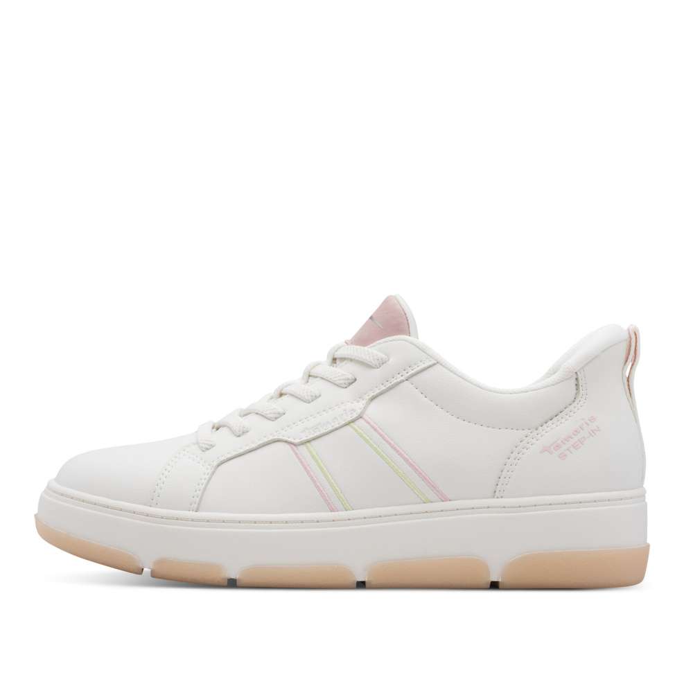 Tenisky Tamaris v bílém provedení s působivými barevnými liniemi jsou skvělou volbou pro každodenní městský styl. Díky svému nadčasovému designu se snadno kombinují s různými outfity a svými komfortními prvky vytvoří dokonalé pohodlí každým krokem. Vyjímatelná stélka nabízí komfort a možnost individuálního přizpůsobení, zatímco pružná gumička namísto tkaničky usnadňuje obouvání. Každý krok bude stabilní díky vyšší podešvi detailně propracovanou v módním stylu. Stylový společník pro každý den – tenisky Tamaris spojují moderní vzhled s maximálním pohodlím.