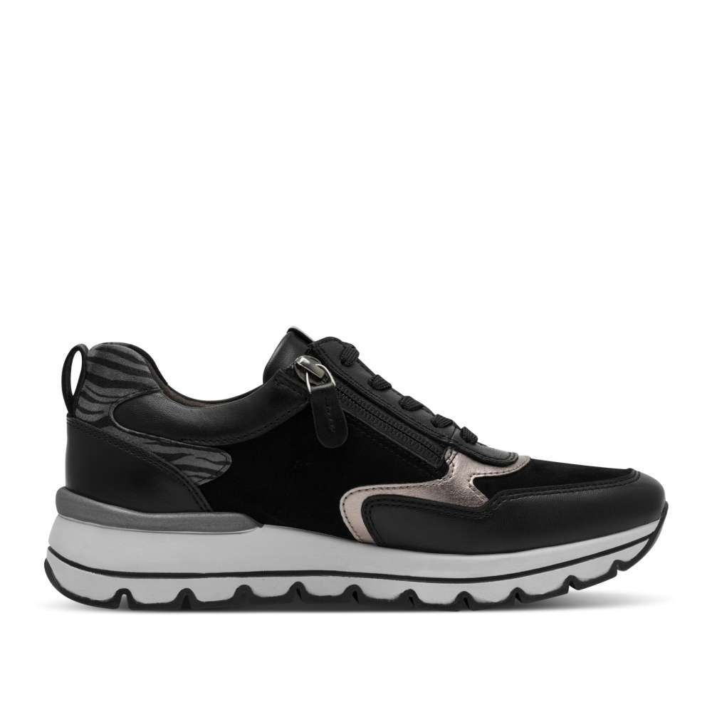Detailní informace Tyto dámské tenisky Tamaris vynikají působivým designem, který dokonale vystihuje charakter značky. Černý svršek těchto tenisek zaujme působivými liniemi a originální kombinací materiálů, které dodávají modelu dynamický vzhled, kdy atraktivní lesklé prvky kontrastují s matnými detaily a podtrhují celkový trendy styl. Jednoduché nazutí i úpravu dle individuálních potřeb zajistí šněrovaní. Kožená vyjímatelná stélka poskytne komfortní pocit každým krokem a spolu s vyšší stabilní podešví v módním provedení poskytne pohodlí i při celodenním nošení. Tyto tenisky představují skvělou volbu pro ženy, které chtějí mít v jednom modelu moderní design, pohodlí i praktičnost. Díky svému univerzálnímu stylu se perfektně hodí k ležérním outfitům i k odlehčeným sportovním kombinacím a stanou se oblíbeným doplňkem pro každodenní nošení.
