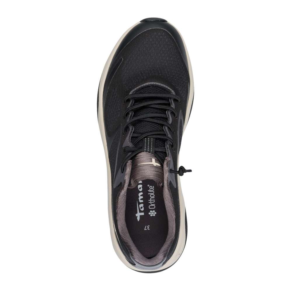 Tenisky Tamaris v moderním sportovním stylu osloví každou ženu, která ocení pohodlí a módní vzhled. Černý svršek s fialovými detaily přináší do outfitu originální nádech, zatímco unikátní design podrážky dodává celému modelu dynamiku. Praktické elastické šněrování a inovativní konstrukce patní části umožňují snadné nazouvání, a vyjímatelná stélka poskytne možnost výměny nebo jednoduché údržby. Tyto tenisky Tamaris jsou perfektní volba obutí pro aktivní dny i stylové volnočasové aktivity.