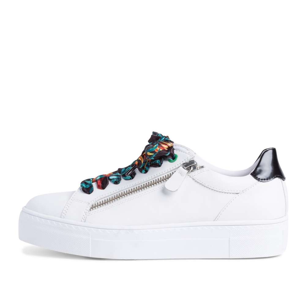 Bílou barvu svršku oživují detaily v jiné barvičce. Mezi ně patří funkční zip, který je na vnější straně boty pro snadnější nazouvání a šněrování, díky kterému si botu můžete doupravit.