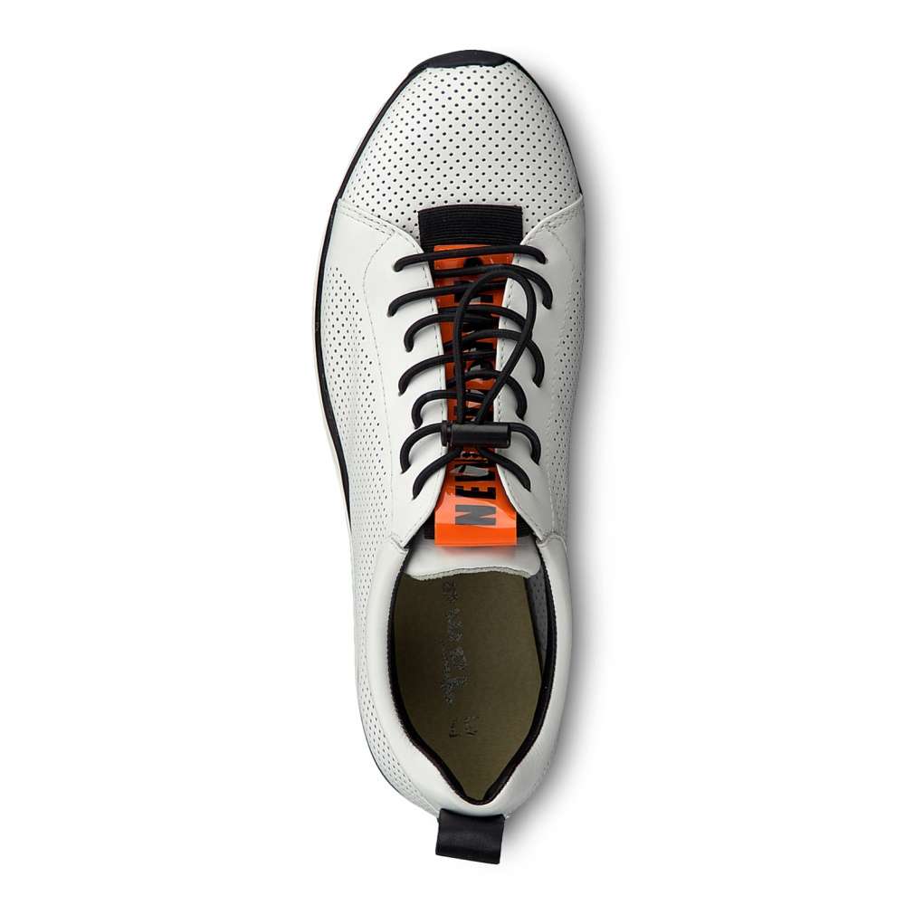 Kožený svršek je perforovaný malými dírkami, které zajišťují cirkulaci vzduchu uvnitř obuvi. Pod šněrováním pružnou gumičkou, která se dá snadno utáhnout, se nachází kontrastní nápis.