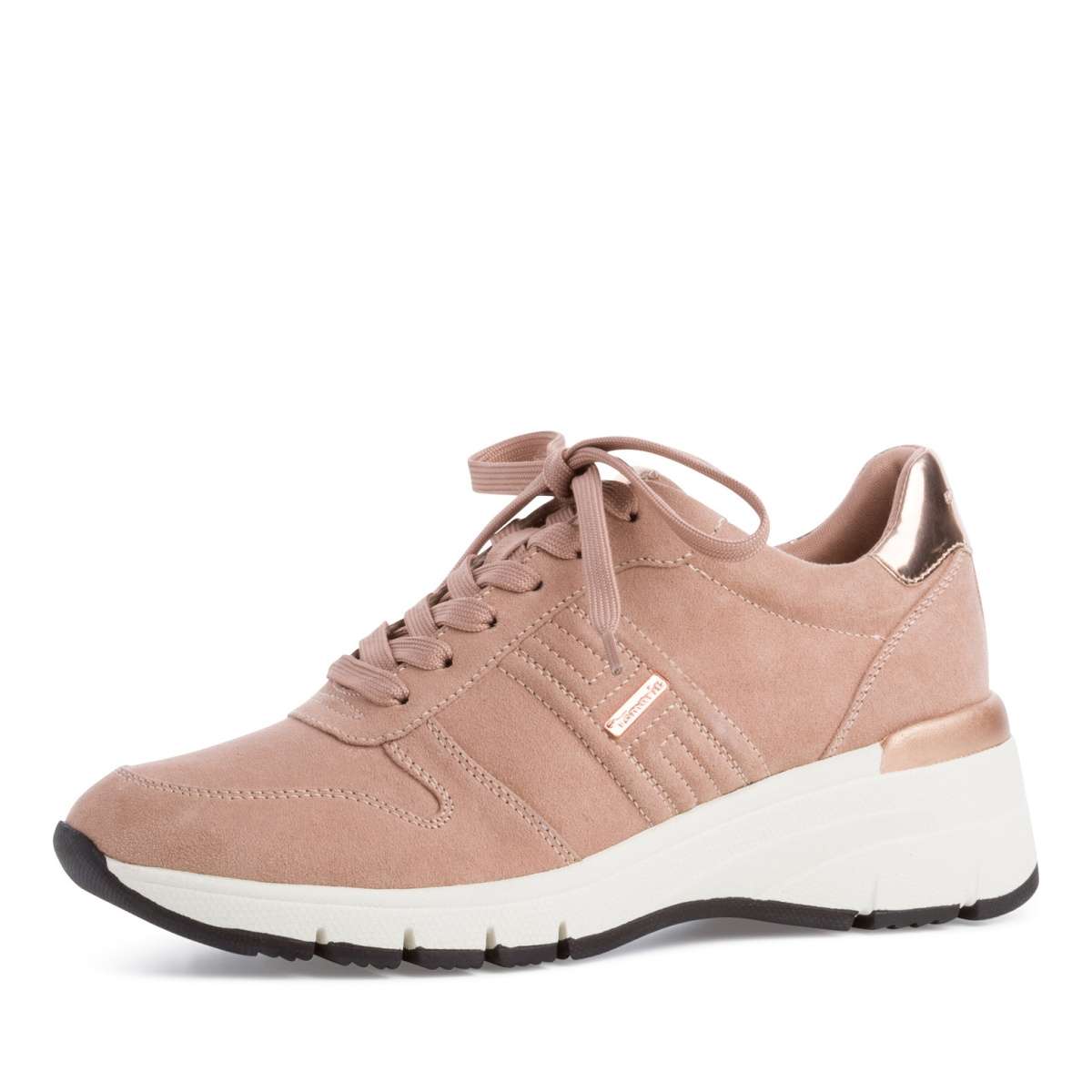 Dámské vyvýšené tenisky s lesklými detaily a prošíváním jsou dozdobeny malým logem značky Tamaris. Tkaničkami na šněrování si je můžete utáhnout přesně podle Vaší potřeby.