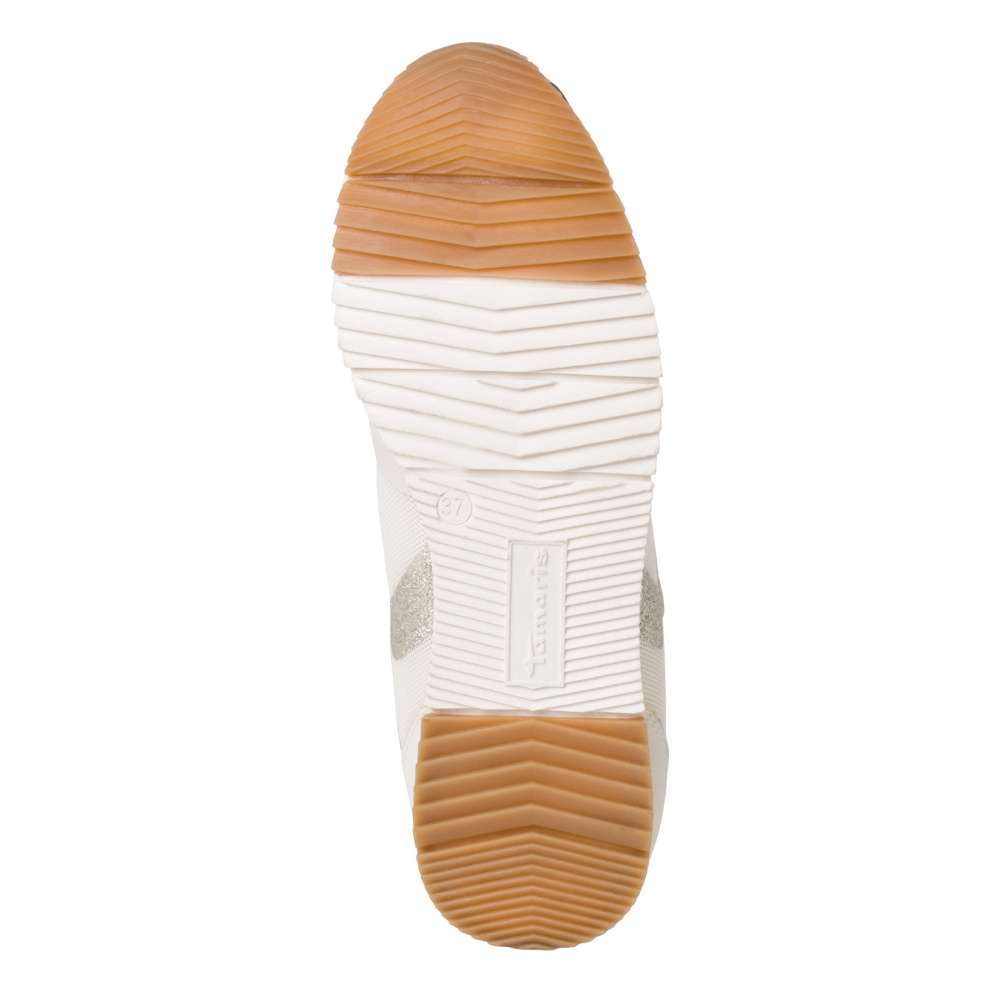 Pohodlné dámské tenisky značky TAMARIS, které rozzáří Váš den i botník. Svršek je doplněn třpytivými tvary po celém obvodu, čímž botičky vyniknou a budou se krásně lesknout na slunci. Nesmí chybět logo značky. Pro dokonalé pohodlí je zde zabudována měkká vyjímatelná stélka, a tak se nemusíte bát, že nezvládnete delší pochůzky. Tato obuv je vhodná jak na procházky v parku, tak do práce, nebo do kina. Technologie: Tato bota je vybavena vyjímatelnou stélkou.