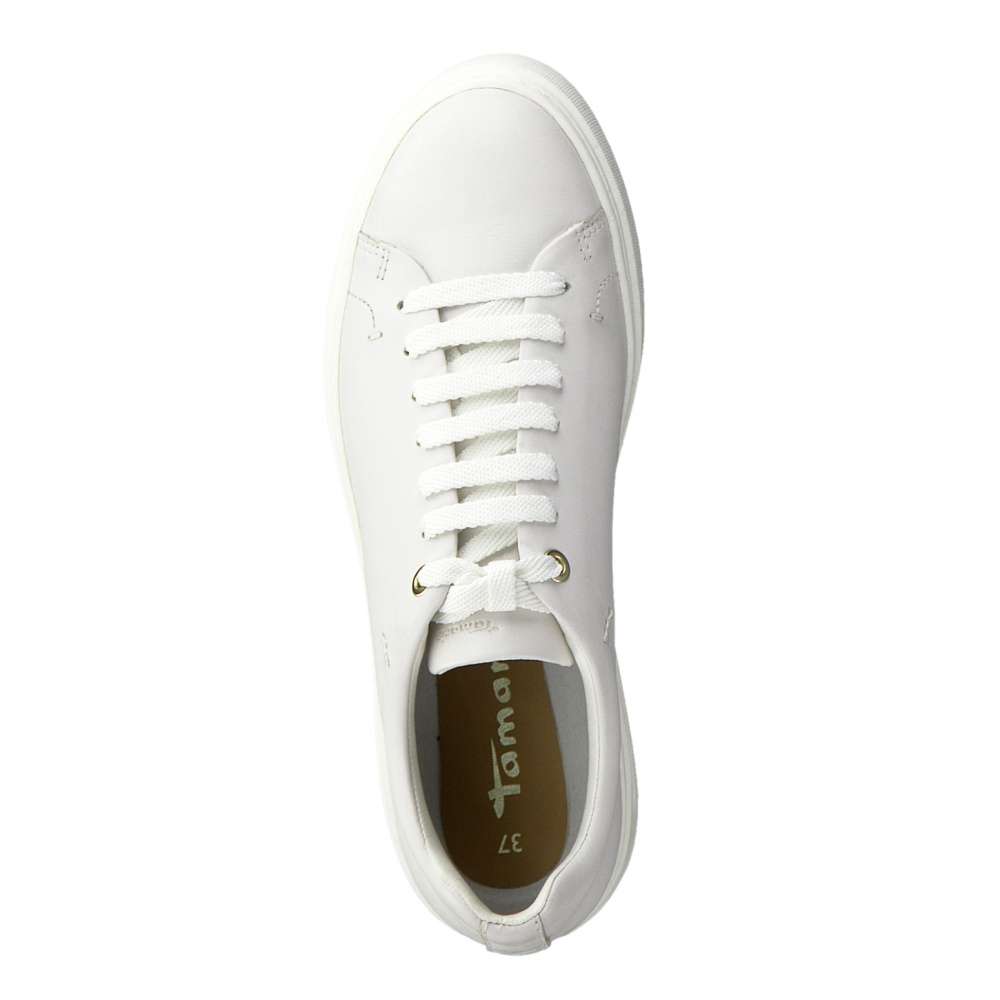 Jednoduché dámské tenisky značky TAMARIS, které rozzáří Váš den i botník. Sněhově bílý svršek se skládá z kůže a syntetiky, a pro snadné obutí zde slouží tkaničky. Stélka je vyjímatelná, a tak ji můžete vyvětrat nebo vyjmout. Pohodlná podšívka zajistí komfort na každém kroku, a tak se nemusíte bát, že v botičkách nevydržíte celý den. Tento kousek se hodí jak do kina, tak na diskotéku.