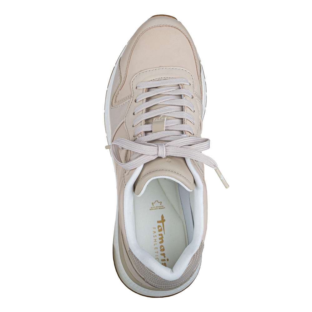 Tyto vkusné tenisky značky Tamaris budou na Vašich nohou vypadat úžasně. Jsou vyrobeny v kombinaci kožených a syntetických materiálů. Tkaničkami na šněrování si je můžete utáhnout přesně podle Vaší potřeby. Měkká vyjímatelná stélka zaručí pohodlí a komfort i při celodenním nošení a kvalitní jemně zdobená podešev Vám zajistí bezpečnou chůzi. Nemáte ještě ve svém botníku pohodlné a zároveň stylové tenisky? Tak neváhejte a pořiďte si tento jedinečný model.