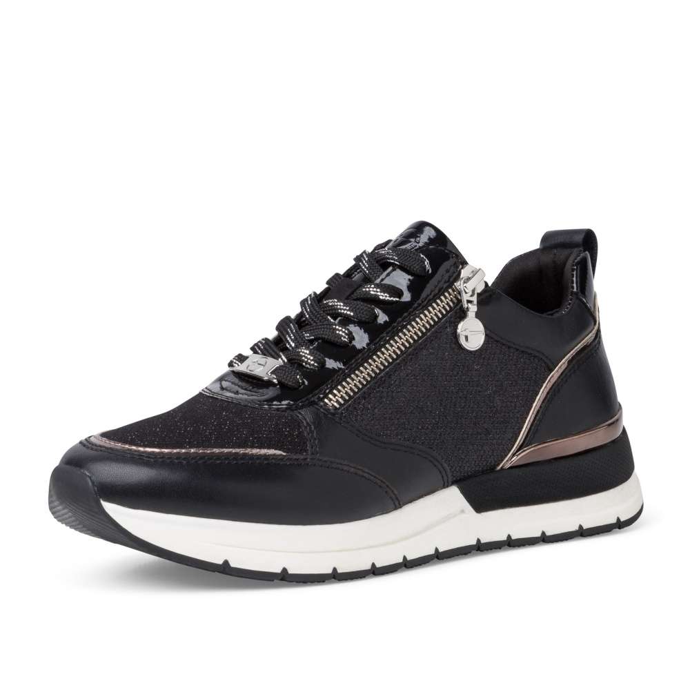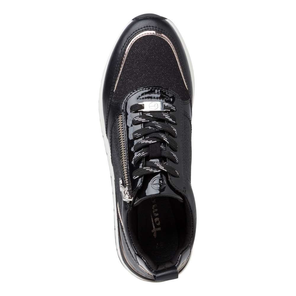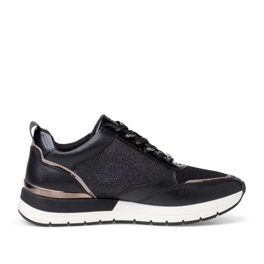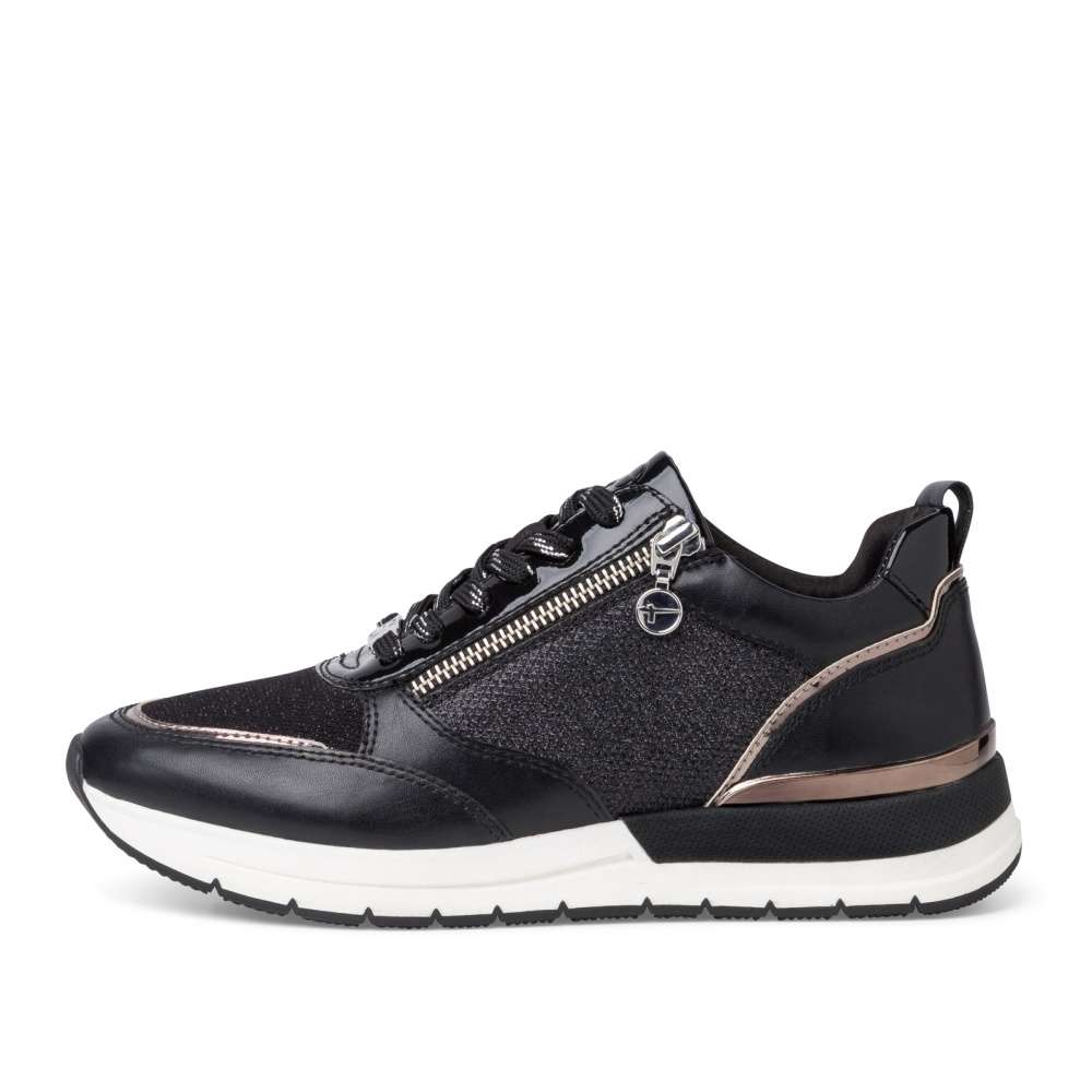 Toužíte po nevšedních teniskách, které neomrzí? Tak schválně mrkněte na tuto třpytivou nádheru. Zlatavé zdobení dodává teniskám naprosto exkluzivní vzhled. Při obouvání si můžete vybrat mezi klasickým šněrováním či rychlejším zipem, který se nachází na boční straně boty. Svršek bot je z textilního a syntetického materiálu. Pohodlí při chůzi zaručí měkká vyjímatelná stélka. Pokud chcete splynout s davem, nechte tyto tenisky raději v botníku. Pokud však toužíte zazářit, nemůžete v těchto botkách šlápnout vedle.