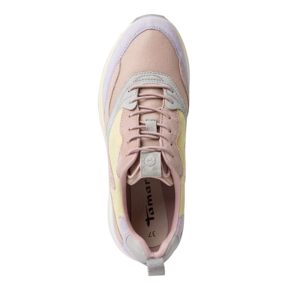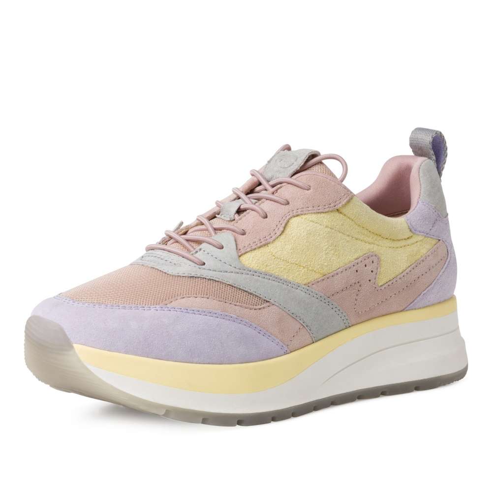 Tyto neotřelé tenisky značky Tamaris nabízí několik barevných variací, které Vás určitě zaujmou na první pohled. Díky pastelovým jasným barvám ozvláštní každý outfit. Svršek je vyroben z kůže v kombinaci textilu, čímž noze zajistí pohodlí a komfort při nošení i v teplejších dnech. Uzavírání pomocí gumiček, jimiž jsou nahrazeny klasické tkaničky dodají botám na stylu, a podtrhnou celkový vzhled. Vyšší podešev navíc přidá pár centimetrů navíc. Boty jsou vhodné do jarních i letních měsíců, a díky své hravosti rozzáří každý outfit a určitě rozveselí Váš den. Dokonalé budou v kombinaci s džíny, úzkými světlými kalhoty, ale i kraťasy. Technologie: Tato bota je vybavena vyjímatelnou stélkou.