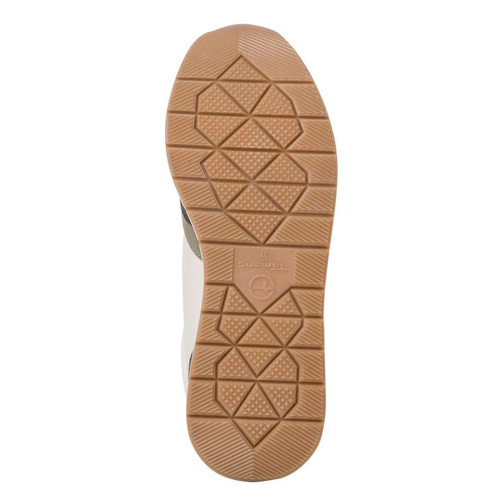 Tyto dámské tenisky TAMARIS jsou propracované do posledního detailu. Krásné sladění barev a decentní tóny dodávají botě šmrnc. Špičku zdobí jemná povrchová perforace, která se opakuje na vnější straně ve tvaru loga značky Tamaris a dále na podrážce v oblasti paty. Podešev je vysoká cca 5 cm a je vyrobená ze speciálního materiálu, který klade důraz na pohodlné nošení. Z praktického hlediska se hodí i vyjímatelná stélka. Hledáte krásné a pohodlné tenisky? Tak tady jsou.
