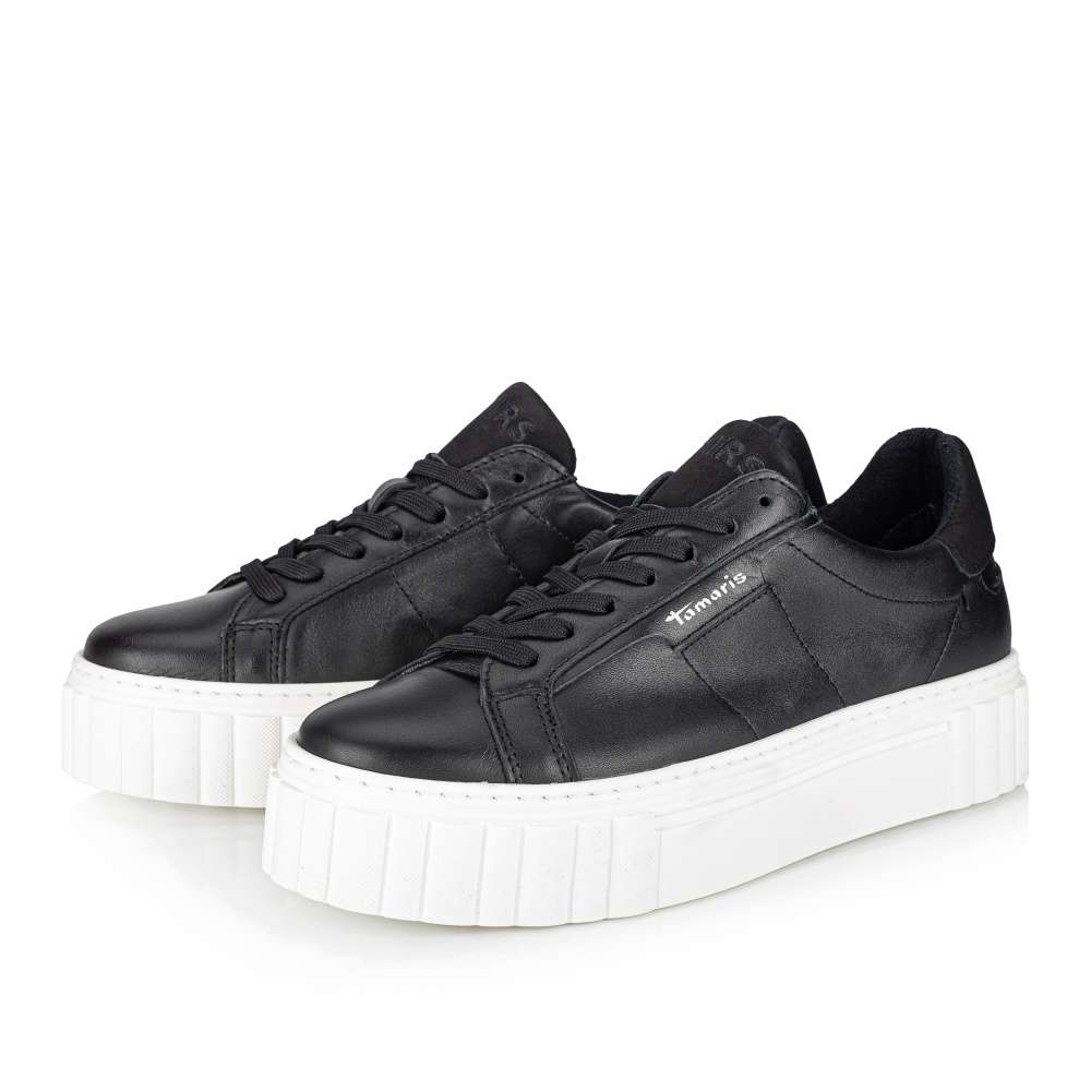 Hledáte moderní, zajímavé, ale zároveň pohodlné dámské boty? Pak značka TAMARIS je správná volba. Bota je hladká, lesklá a prošití svršku je nenápadné. Pozornost upoutá podešev vysoká cca 3 cm, která je v kontrastní bílé barvě. Z vnější strany boty nechybí decentní nápis Tamaris a pohodlí zajistí měkká kožená stélka TOUCH-IT. Tyto boty okoření Váš outfit, ať už vyrazíte v šatech nebo zvolíte spíše kalhoty.