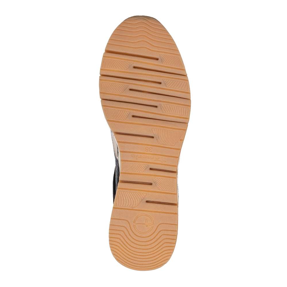 Okouzlující tenisky značky Tamaris jsou neodolatelné hned na první pohled. Unikátní svršek je složen z různých materiálů a vzorů, doplňuje jej zip a originální šňůrky usnadňující obutí. Vyjímatelná stélka spolu s vyvýšenou kontrastní podešví se postarají o pohodlnou chůzi a zaručeně doplníte tímto kouskem svůj šatník originalitou. Boty jsou ideální nejen k džínám, ale především i k sukni. Technologie: Tato bota je vybavena vyjímatelnou vložkou.