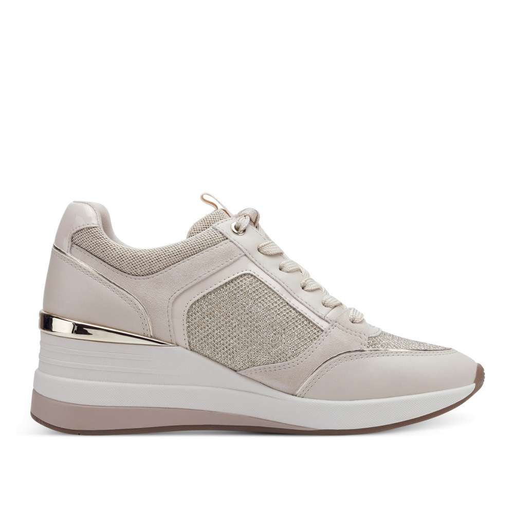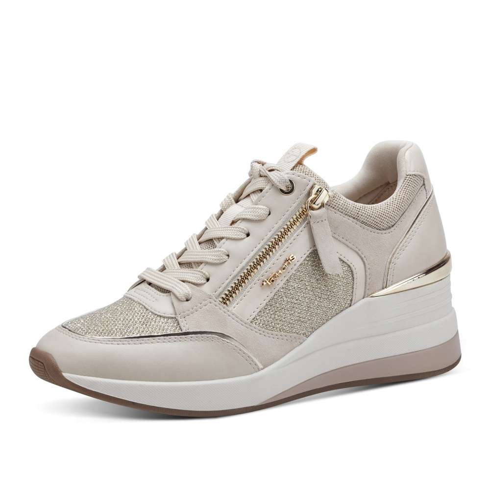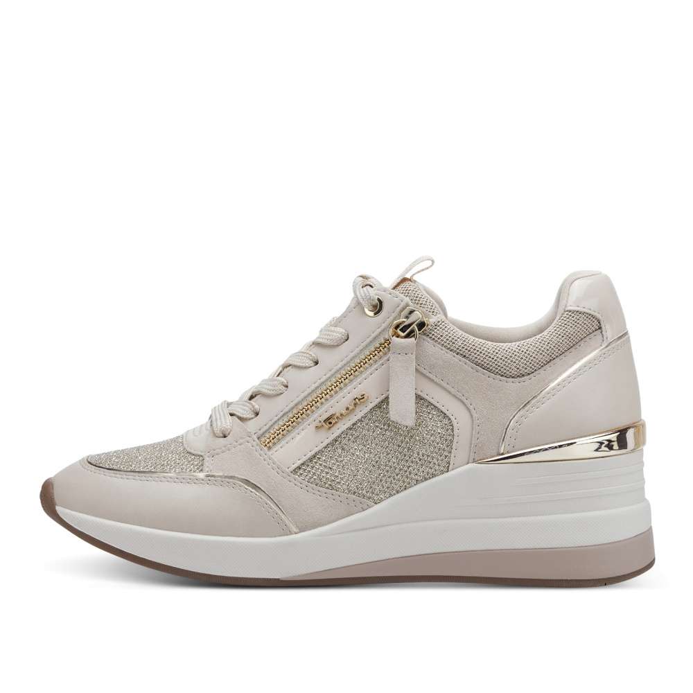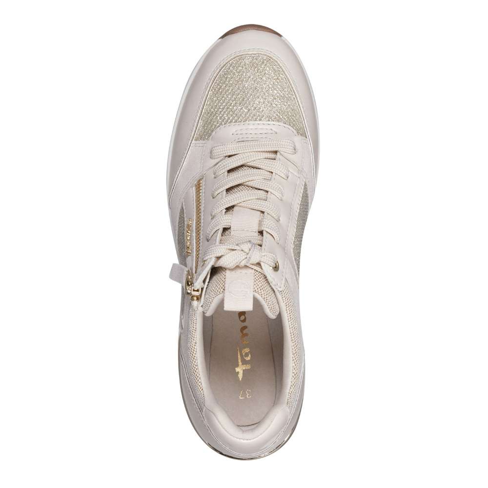 Neotřelá kombinace materiálů a hravý design, to jsou tyto boty od značky TAMARIS. Pokud si potrpíte na detaily, tak Vás jistě zaujmou metalické odlesky svršku a zip zlaté barvy, který spolu s tkaničkami ulehčí obutí. Tyto tenisky mají vyvýšenou podešev, která jim dodá na originalitě. Vyjímatelná stélka je příjemný a praktický bonus. Zazáříte v nich jako hvězda na nebi.