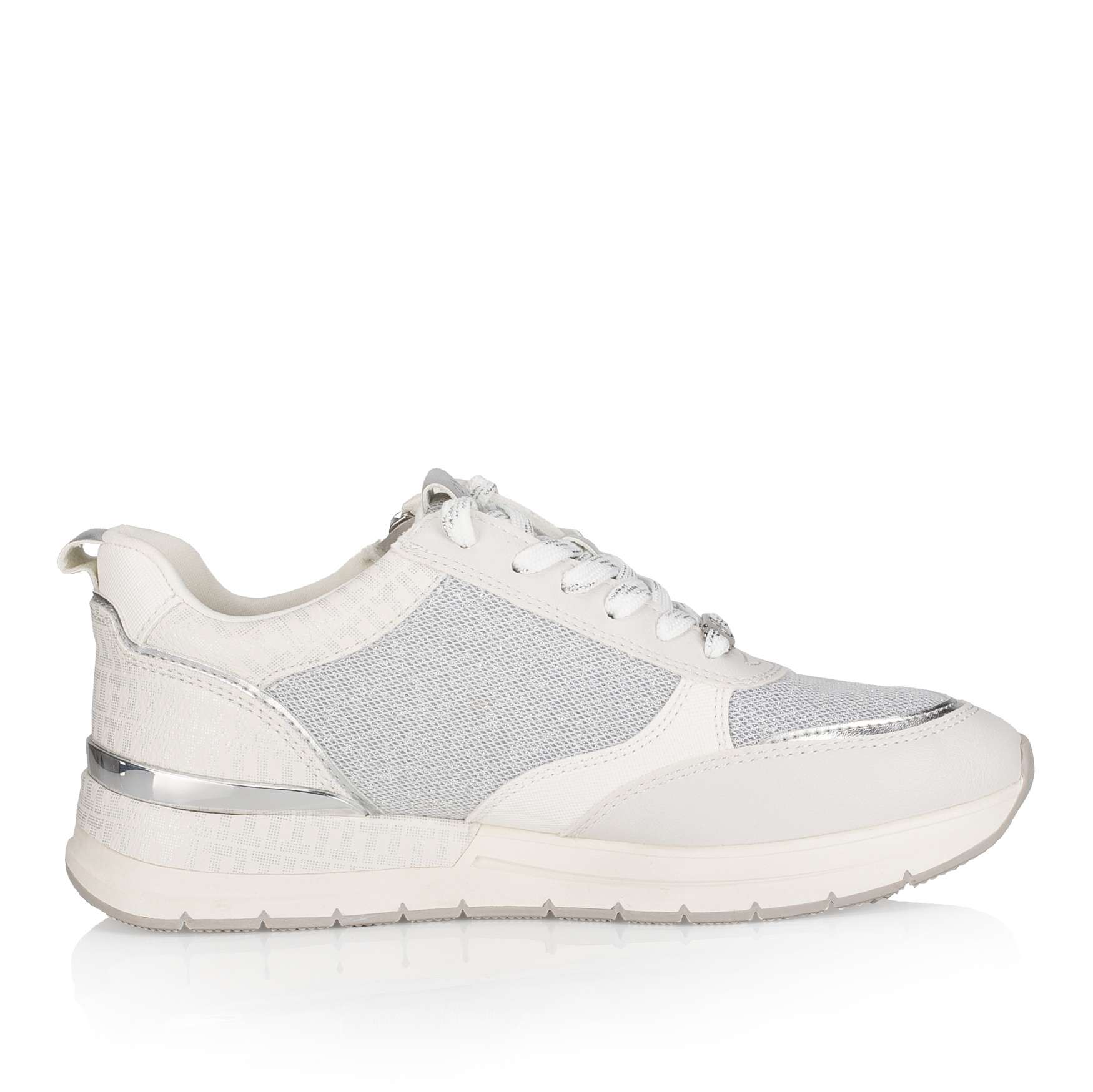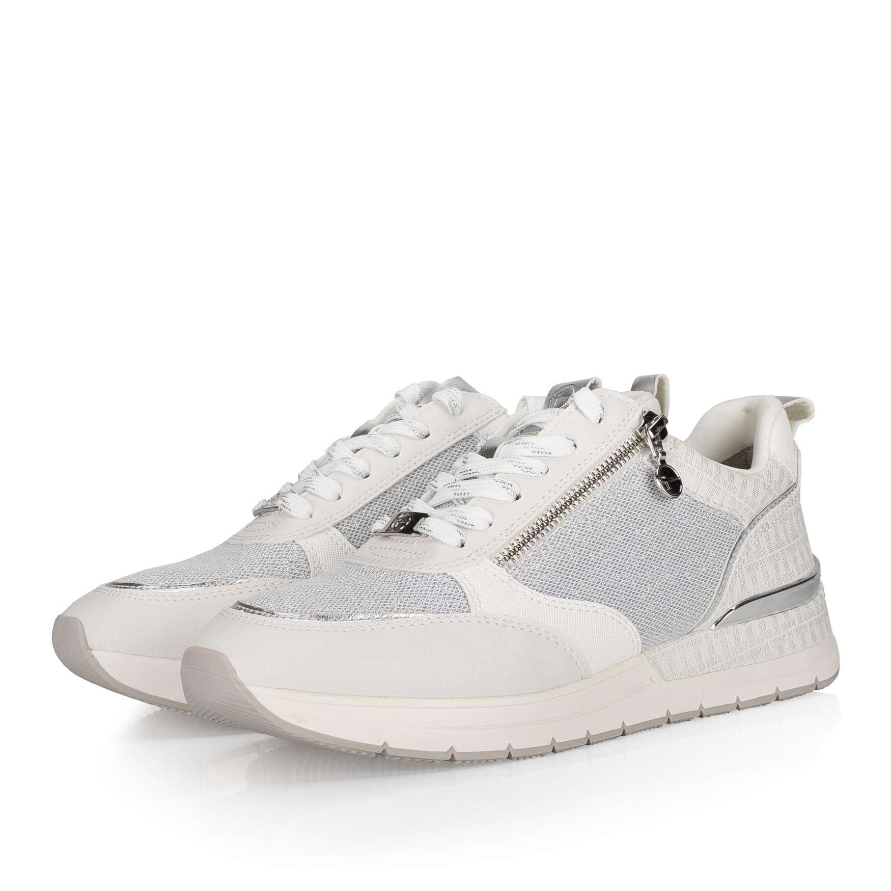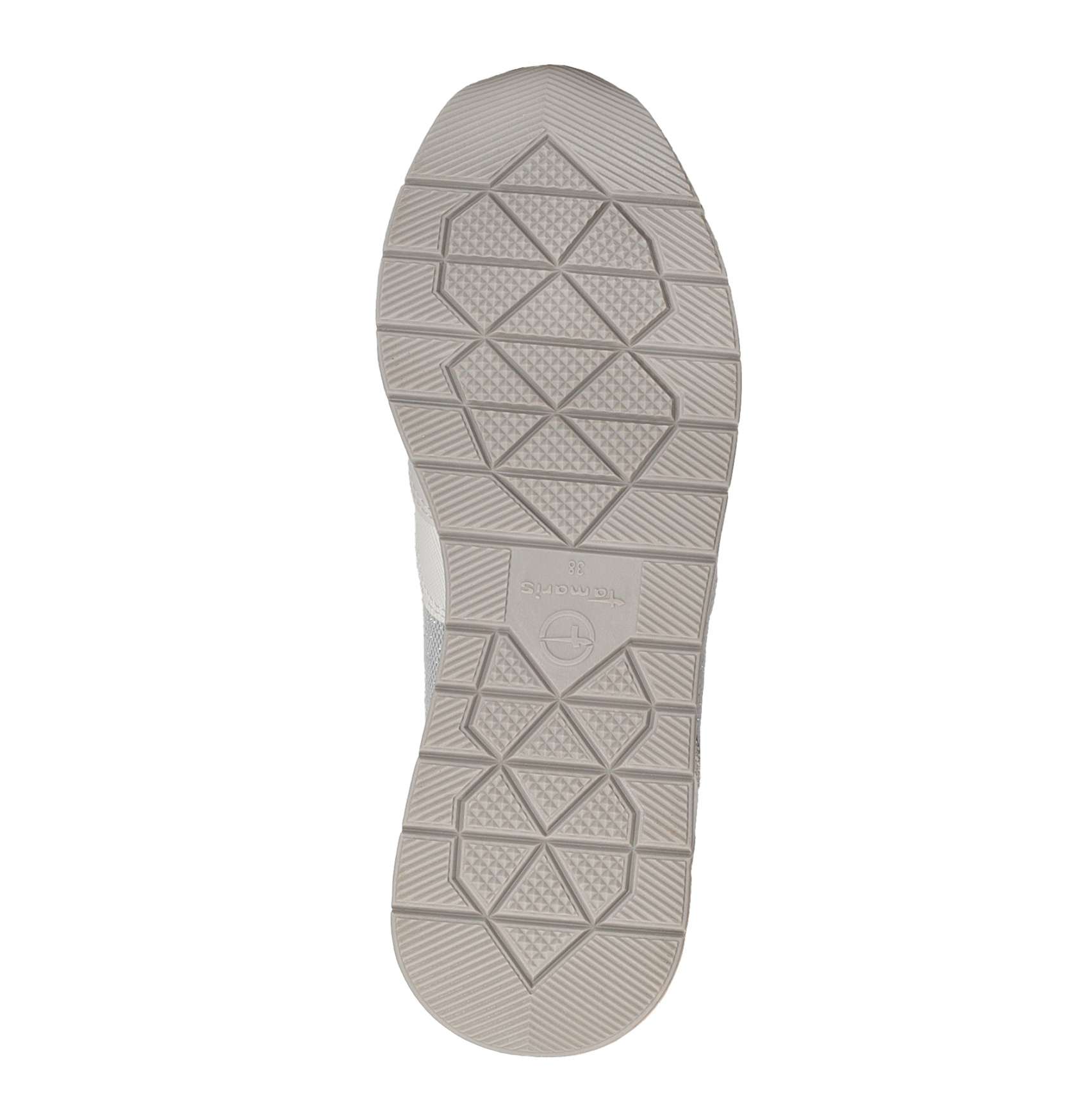 Okouzlující tenisky značky Tamaris jsou neodolatelné hned na první pohled. Unikátní svršek je složen z různých vzorů a stříbrných části, doplňuje jej zip a originální šňůrky usnadňující obutí. Vyjímatelná stélka spolu s vyvýšenou kontrastní podešví se postarají o pohodlnou chůzi a zaručeně doplníte tímto kouskem svůj šatník originalitou. Boty jsou ideální nejen k džínám, ale především i k sukni.