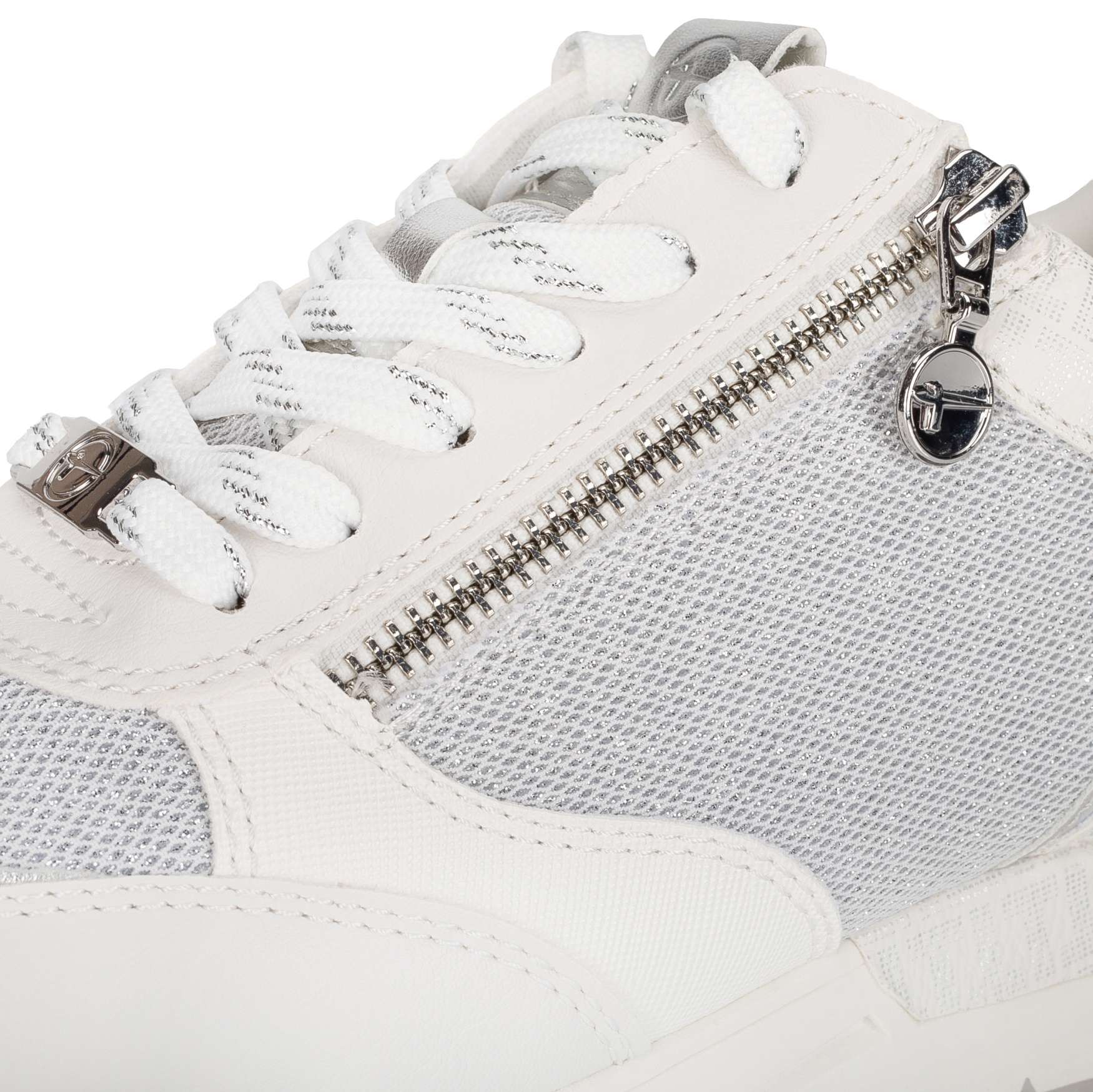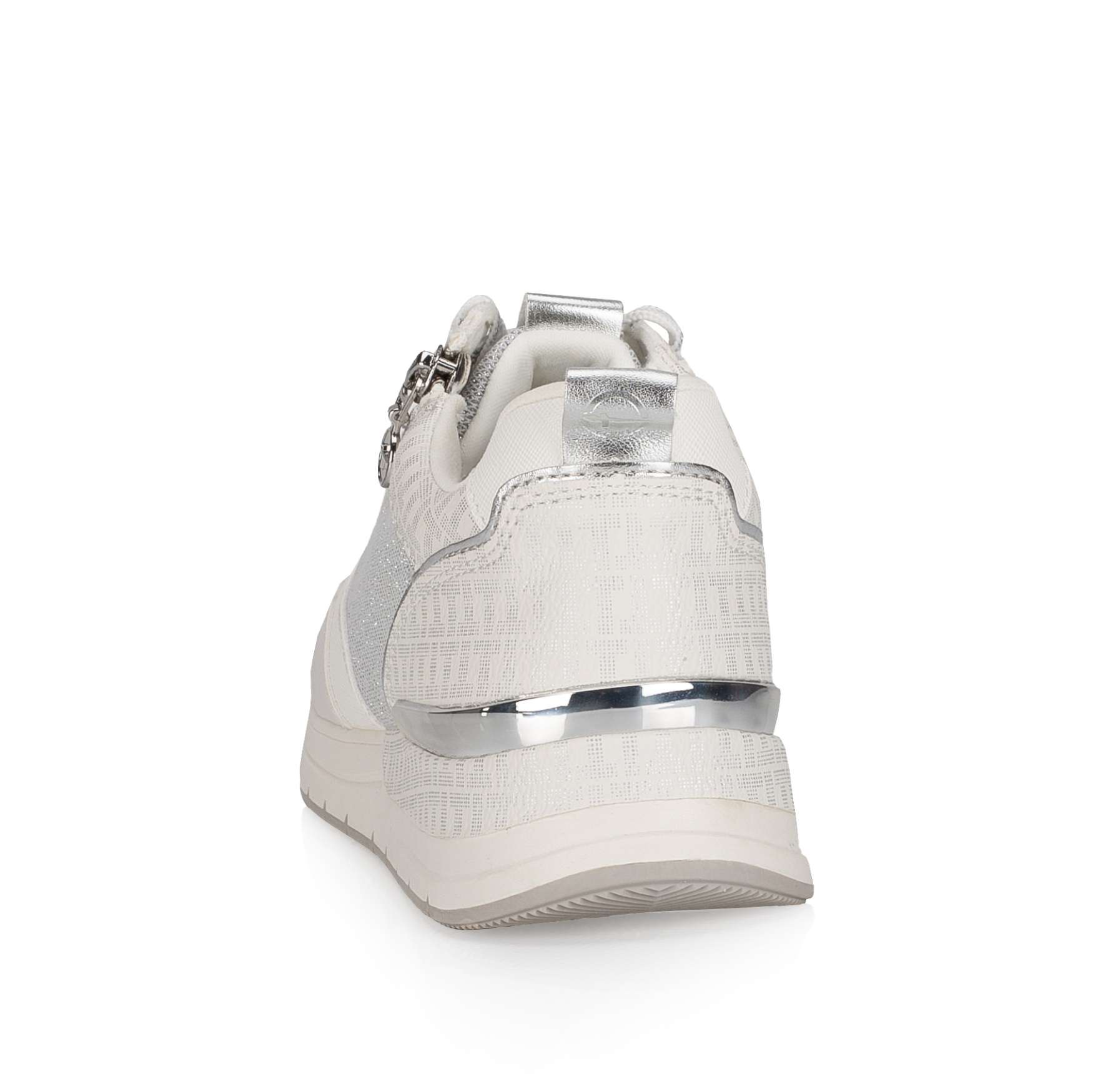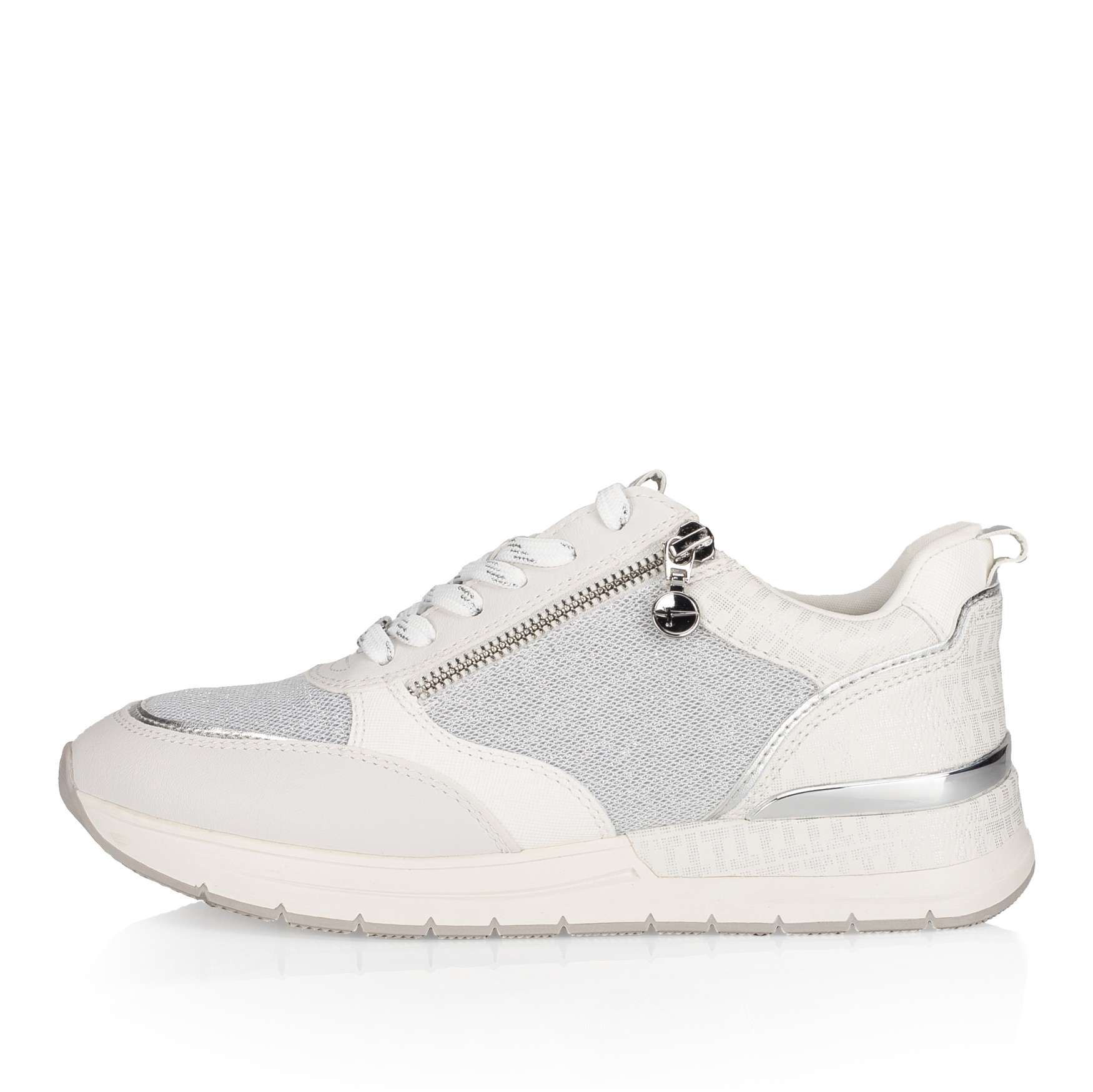 Okouzlující tenisky značky Tamaris jsou neodolatelné hned na první pohled. Unikátní svršek je složen z různých vzorů a stříbrných části, doplňuje jej zip a originální šňůrky usnadňující obutí. Vyjímatelná stélka spolu s vyvýšenou kontrastní podešví se postarají o pohodlnou chůzi a zaručeně doplníte tímto kouskem svůj šatník originalitou. Boty jsou ideální nejen k džínám, ale především i k sukni.