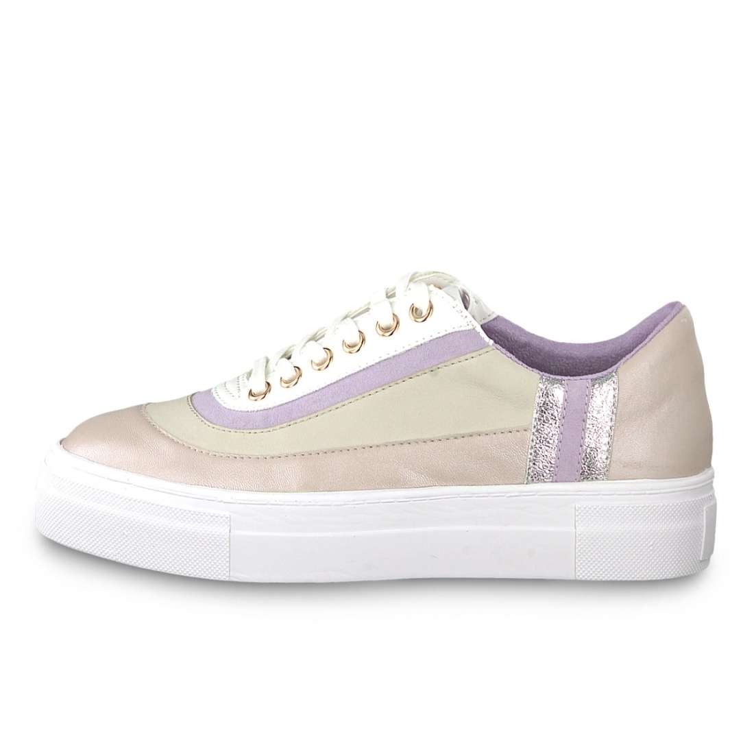 Kožená teniska v pastelových barvách v kombinaci růžové, fialové, béžové s nepřehlédnutelným zdobným prvkem z vnější i vnitřní části ve fialovo stříbrné variante. Šněrováním si ulehčíte nazouvání a přizpůsobíte si boty svým požadavkům. Originální vzhled navrhl známy módní návrhář Marcel Ostertag. Už jen si je nazout a vyjít si na procházku nebo do práce.