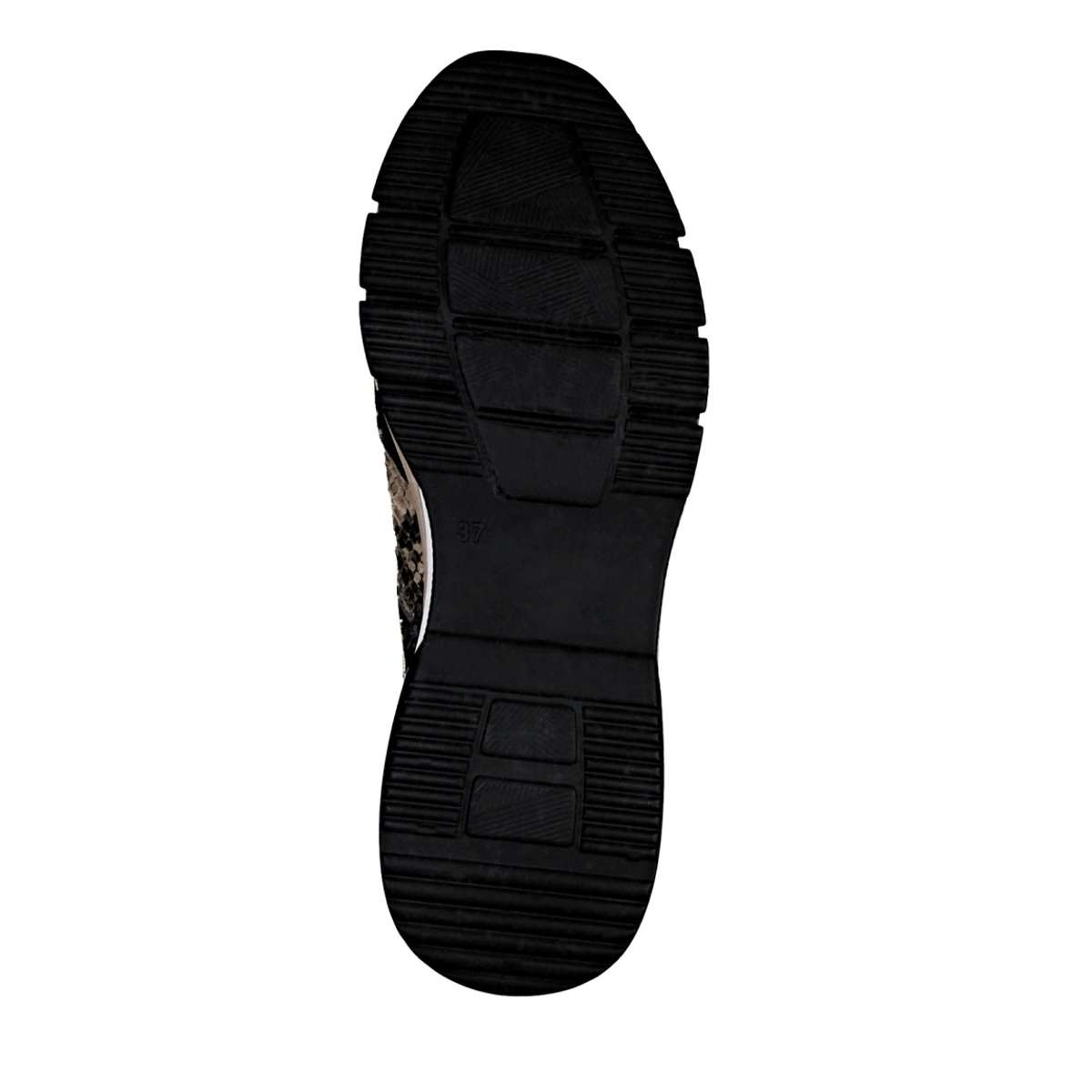 Kvalitní syntetická podešev má v nejvyšším místě pod patou cca 4,5 cm. Designová podešev je kontrastně poskládaná z několika barev a hrubší vzorek Vám zajistí jistou chůzi.