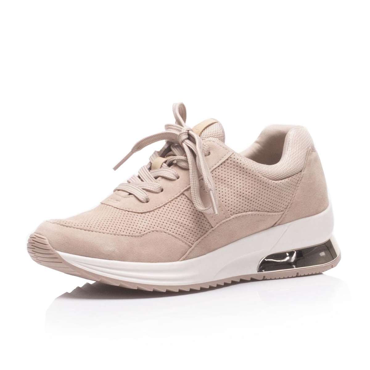 Dámské tenisky jsou šité z pravé kůže v béžové barvě doladěné pak jsou povrchovou perforací, která neprochází skrz celou tloušťku materiálu a zlatým prvkem v patě. Šněrováním si pak obuv upravíte přesně dle svých požadavků. Vyšší podešev a úžasně měkká stélka se Vám postarají o pohodlný a příjemný každý krok. Tento model užijete vždy a všude, ať už k volnočasovým či pracovním povinnostem.