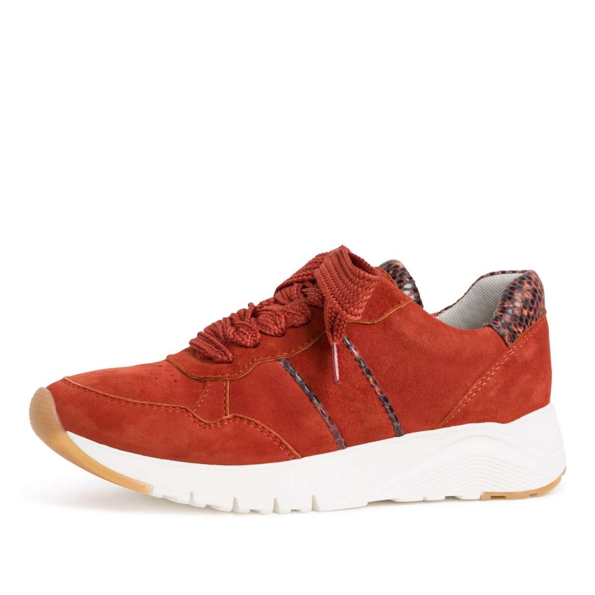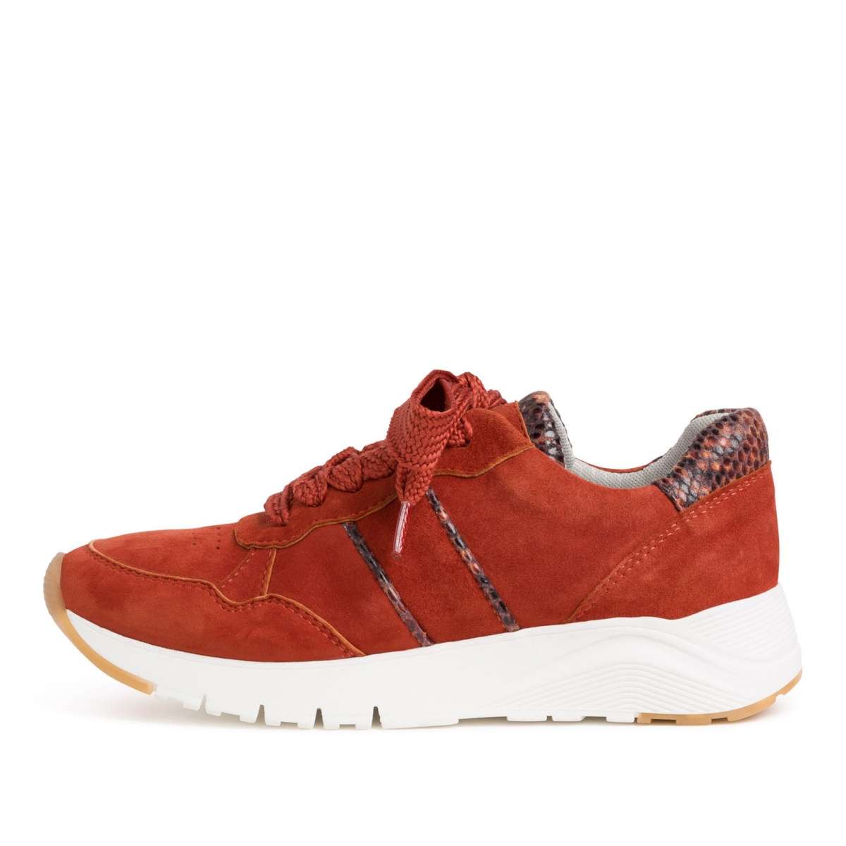 Tyto tenisky značky TAMARIS budou skvěle vypadat k džínám, ale i ke sportovní sukni či šatům. Svršek je hladký a po bocích jsou vloženy dva pruhy, aby dodaly obuvi zajímavý vzhled. Na jazyku a nártu je lesklý hadinkový detail a vyšší podešev s výraznějším vzorkem ocení především ženy, které i ve sportovní obuvi chtějí mít pár centimetrů navíc.