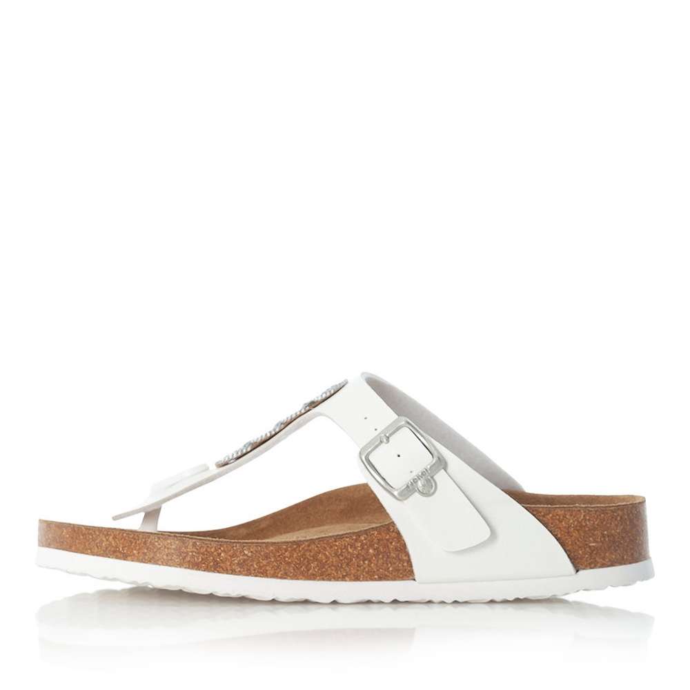 Jednoduchý hladký svršek je ozdoben zajímavou nártovou aplikací a na vnější straně kovovou sponou, kterou si můžete obuv nastavit dle svých požadavků.
