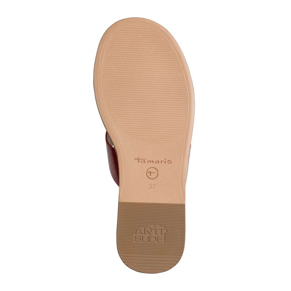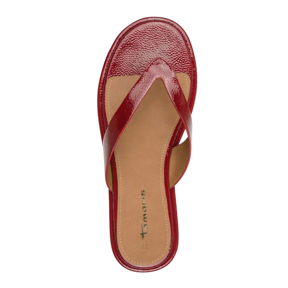 Nazouváky Tamaris ve stylovém provedení přes prsty zaujmou na první pohled svým působivě červeným lesklým svrškem, který dodává celému modelu jedinečný vzhled. Jsou ideální volbou pro ženy, které chtějí i v letních dnech působit upraveně a zároveň si dopřát maximální pohodlí. Komfortní stélka dopřeje chodidlu měkký došlap a příjemný pocit při každém kroku, zatímco flexibilní podešev se přirozeně přizpůsobuje pohybu nohy. Tyto nazouváky jsou skvělou volbou pro letní dny – k šatům, sukním i volnočasovým outfitům, když chcete spojit styl, ženskost a pohodlí v jednom kroku.