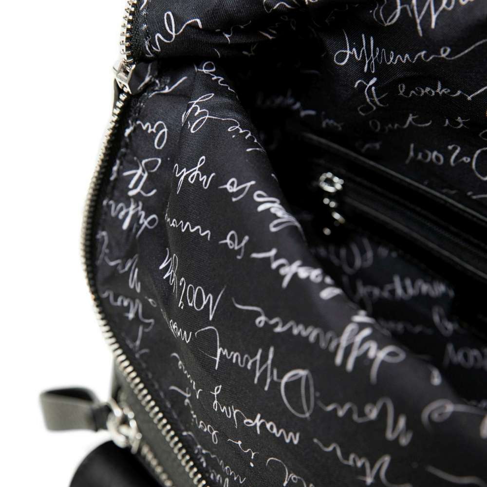 Větší dámský batoh v černé barvě od značky Desigual je velice praktický, a to díky několika různým kapsám z přední strany, které jistě oceníte.