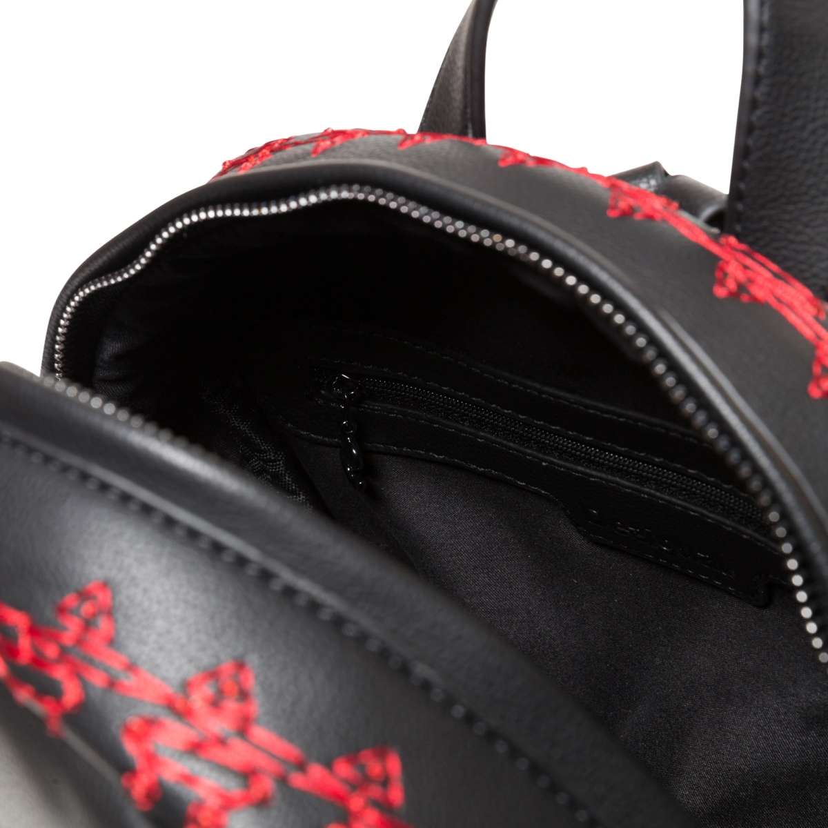 Tento dámský batoh od značky Desigual v černé barvě má ozdobný prvek v podobě výrazného červeného prošití v různých tvarech. Na zadní straně můžete ocenit menší kapsičku pro Vaše drobnosti.
