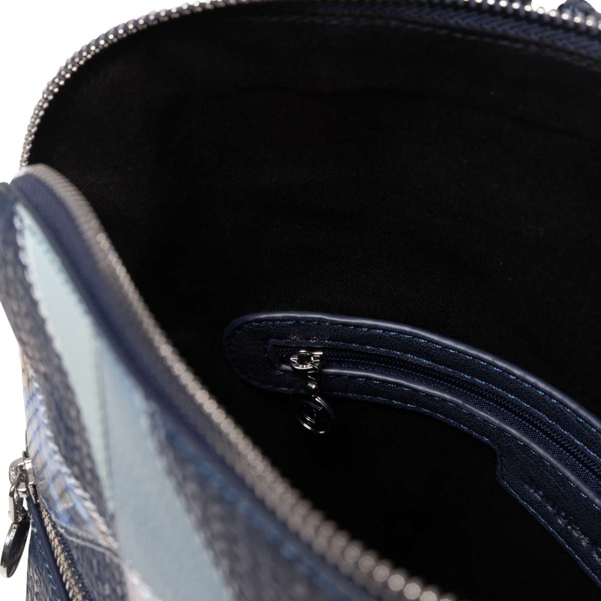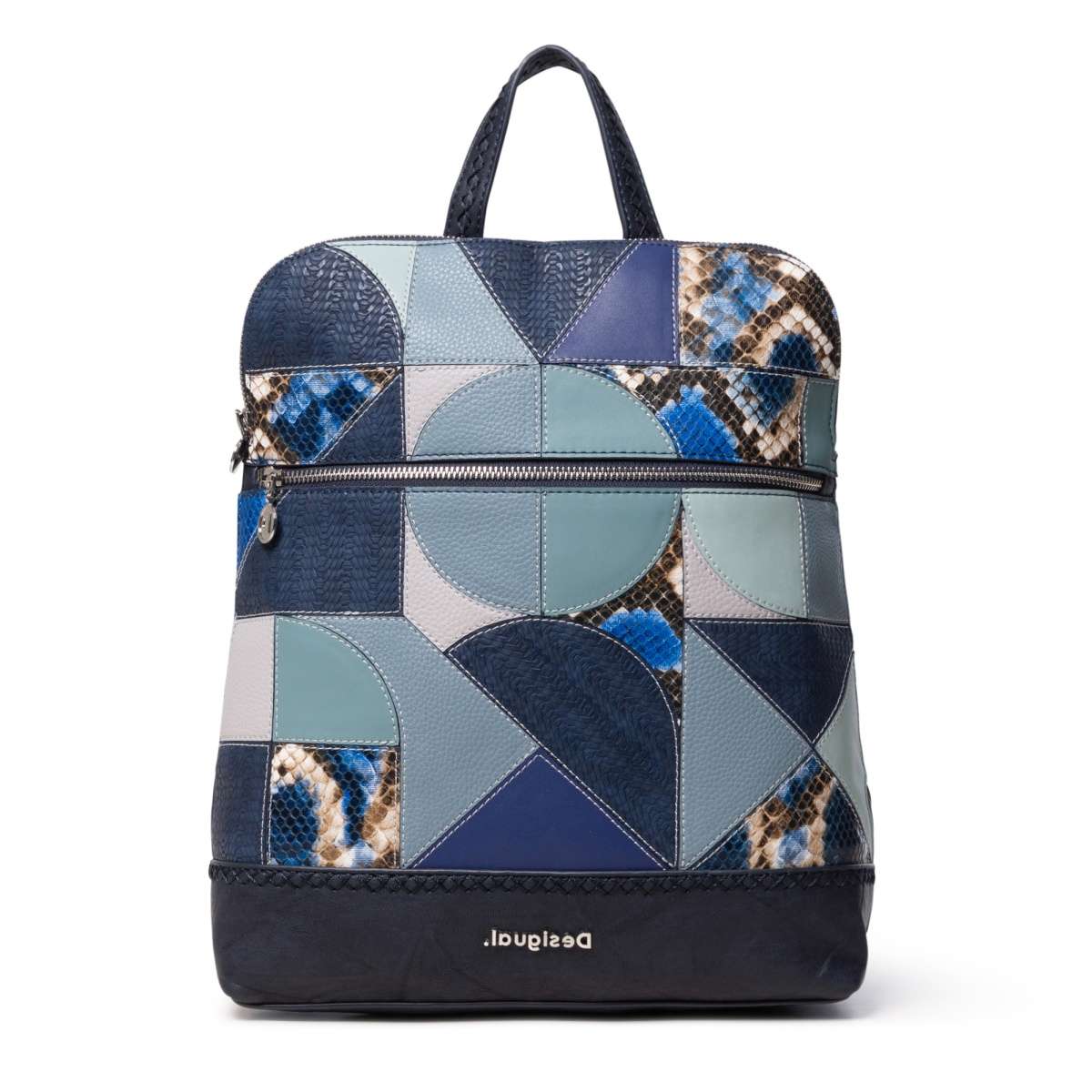Stylový dámský batoh od značky Desigual má obohacený svršek z designově seskládaných materiálů v modrých odstínech. Na přední straně se nachází kapsa, do které si můžete uložit jakékoliv drobnosti.