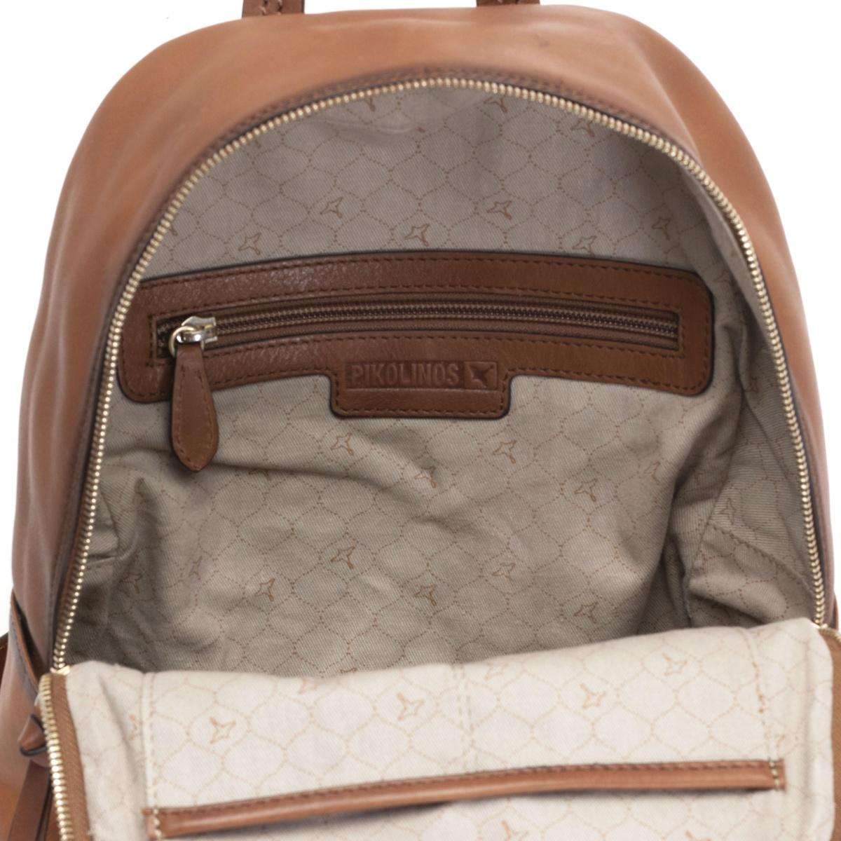 Dámský batoh PIKOLINOS vínovo-hnědé barvy, hladkého povrchu je zdoben nápisem PIKOLINOS. Batoh má zip, po jehož rozepnutí se otevře vnitřní kapsa, do které se vejde snad vše, co sebou jen potřebujete. Uvnitř je pak malá samostatná kapsička na zip. Popruhy u batohu jsou nastavitelné. Tento batoh je skvělý jako módní doplněk k naší obuvi PIKOLINOS a zároveň pohodlný při každodenním nošení.