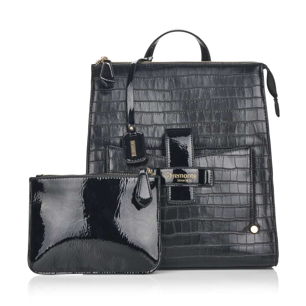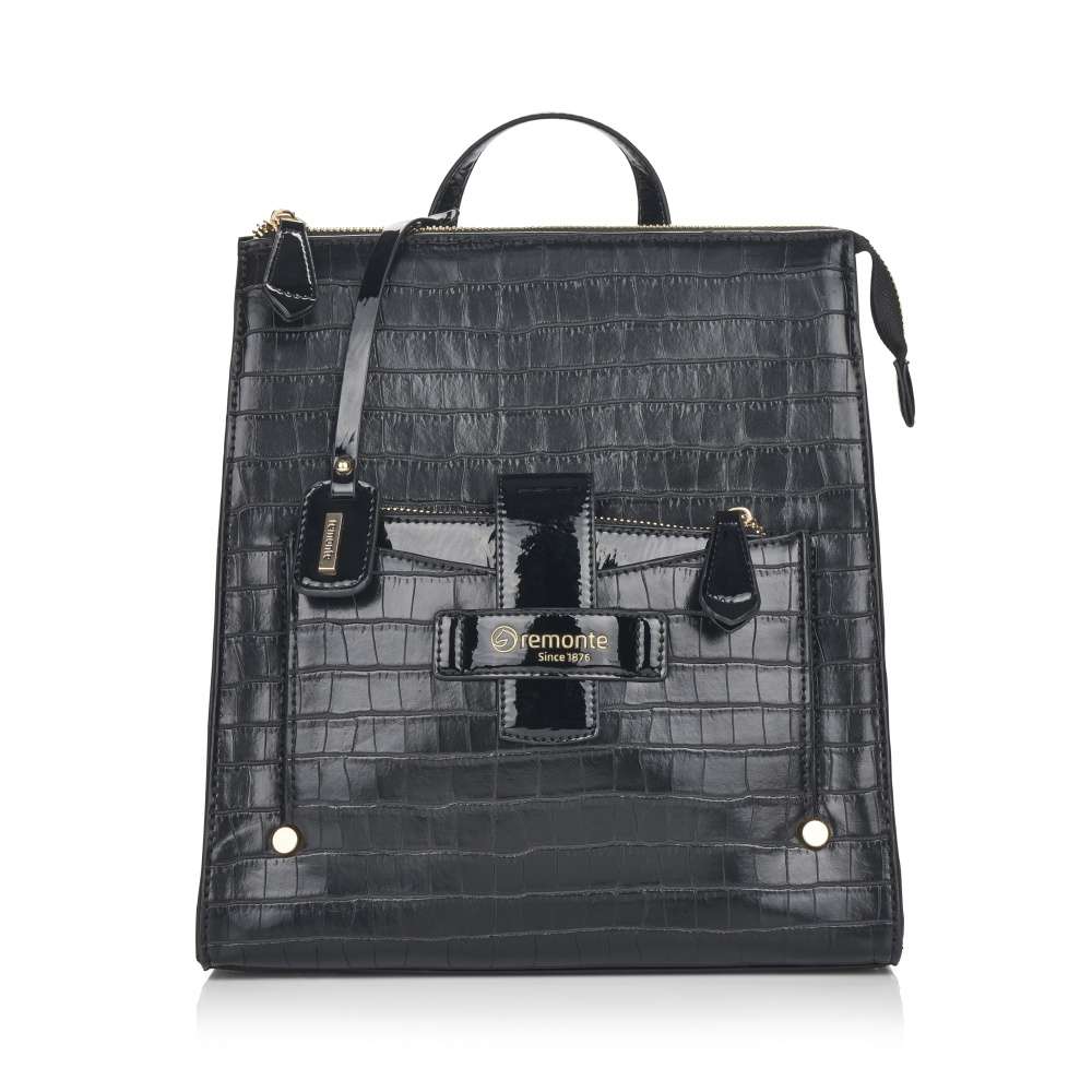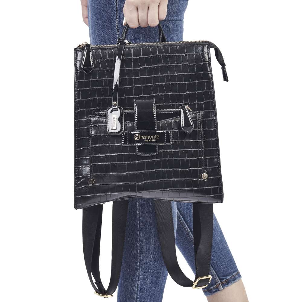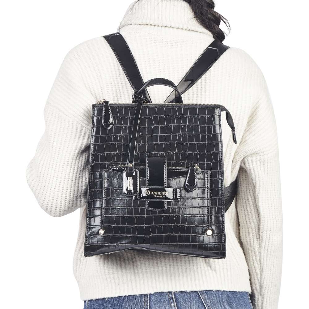 Svršek má výrazný vzor z hadí kůže, na přední části zvýrazněn nádhernou kapsou se zlatým popisem Remonte v lesklém materiálu se zipem a nepřehlédnutelnou klopou.