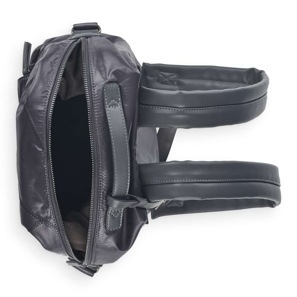 U horního okraje má batoh zajímavý protáhlý zip, který rozepíná prostor pro „vše“ co nutně potřebujete uschovat. Poutko a regulovatelné ramenní popruhy zajistí pohodlné nošení jak v ruce, tak na zádech.